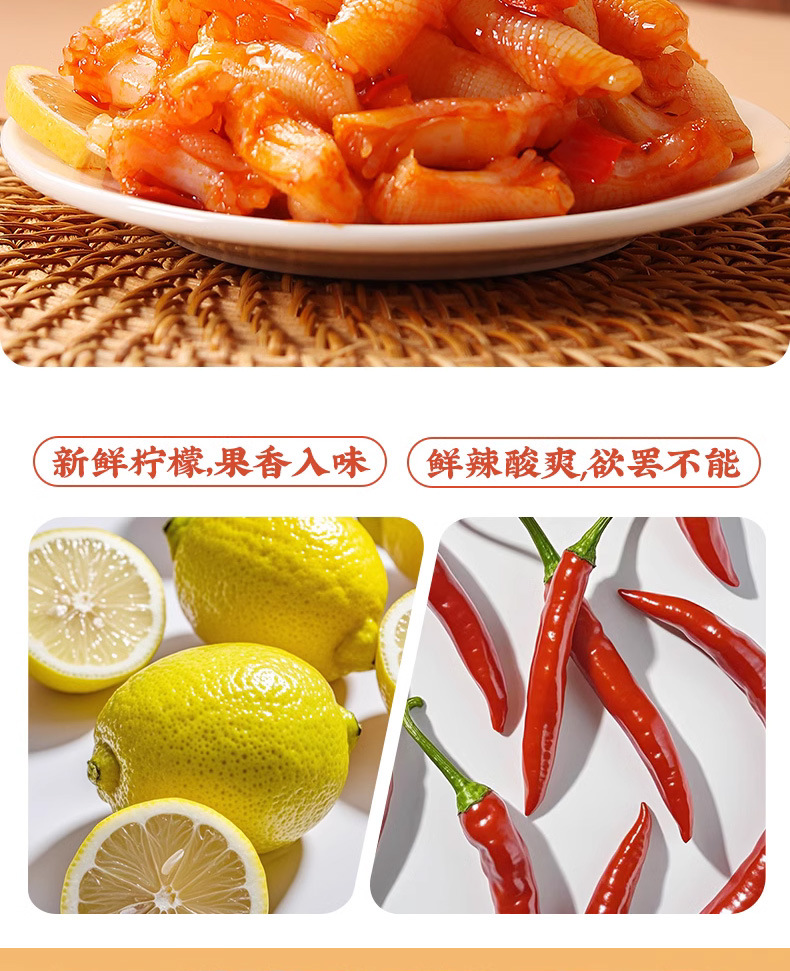 Chew Ken Shuang Shuang 치킨 발 시선 소어와 매콤한 뼈없는 레몬 뼈없는 치킨 발 시선 인스턴트 간식 인터넷 축하 쫓는 드라마 욕심 간식