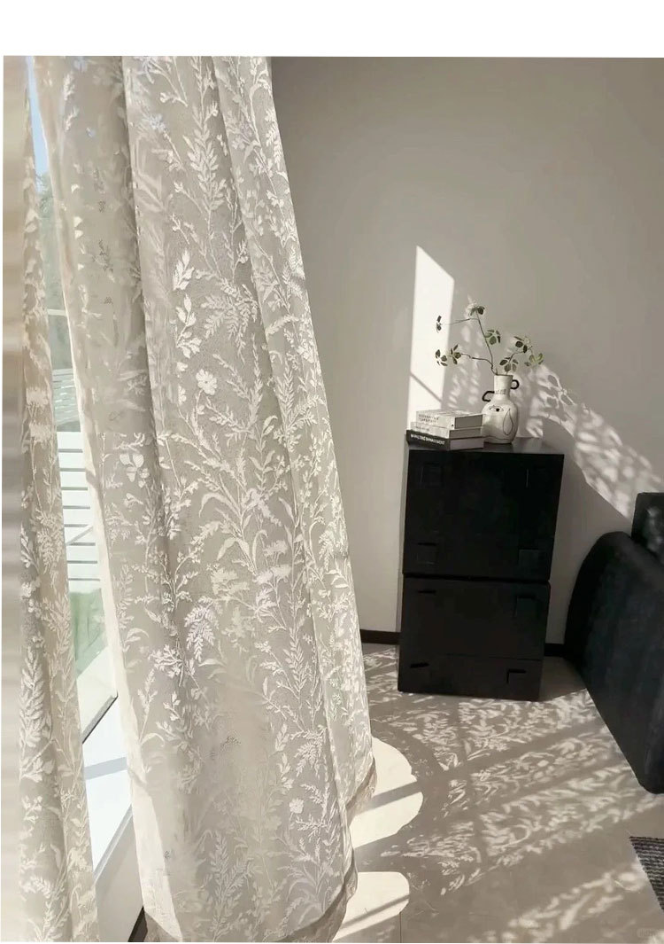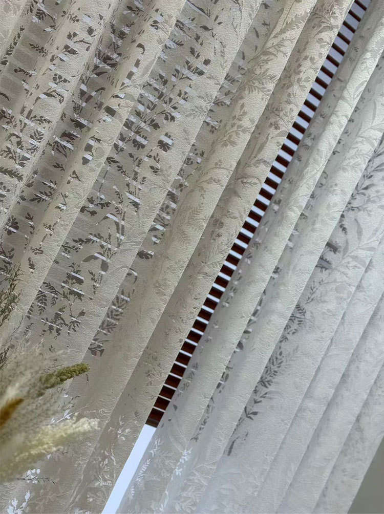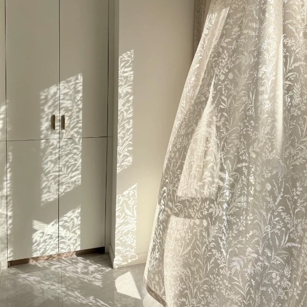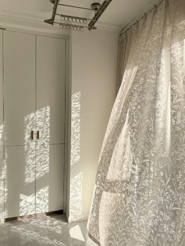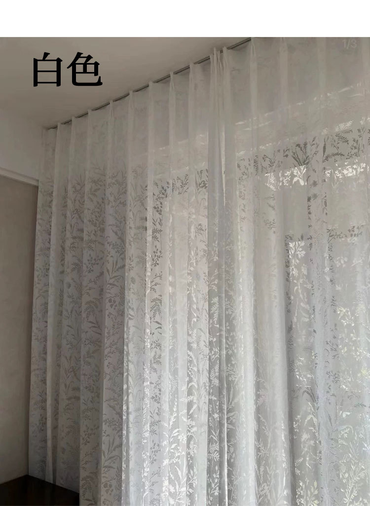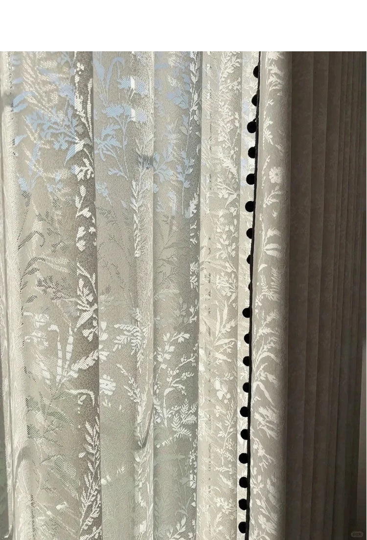 프랑스 크림 바람 문 지점 그림자 간단한 현대 창 화면 투명하고 불 침투성 침실 발코니 베이 창 올 매치 거즈 커튼