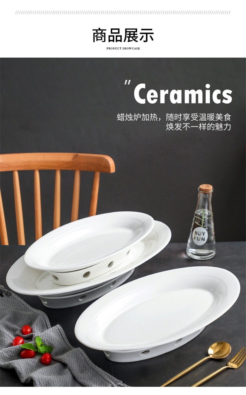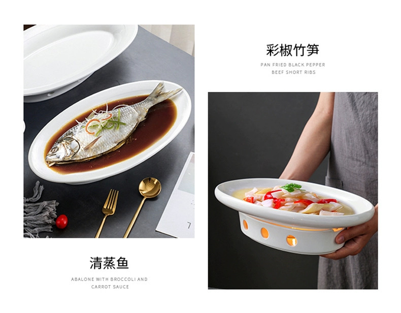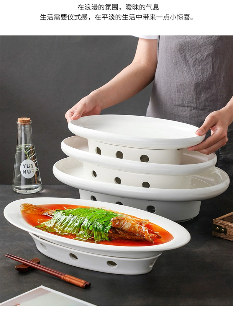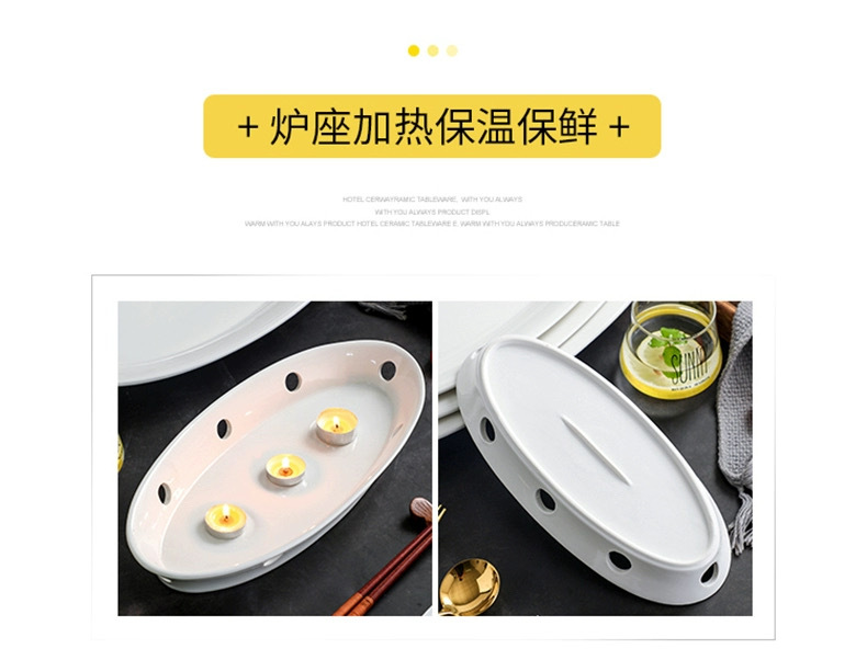 세라믹 생선 스토브 새로운 생선 접시 가정용 생선 찜 접시 촛불 가열 및 단열 호텔 식기 세라믹 다진 고추 생선 머리