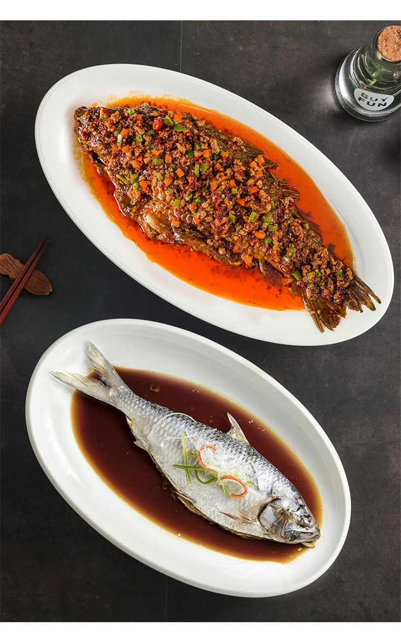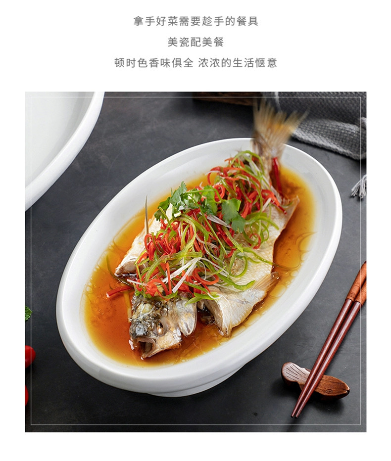 세라믹 생선 스토브 새로운 생선 접시 가정용 생선 찜 접시 촛불 가열 및 단열 호텔 식기 세라믹 다진 고추 생선 머리스토어 가기