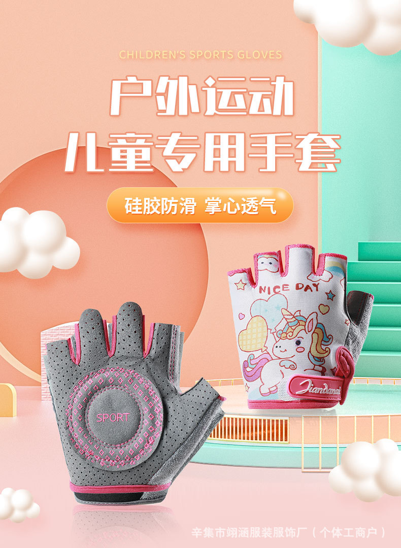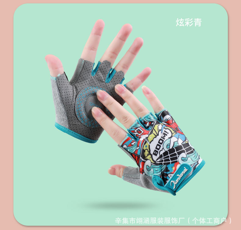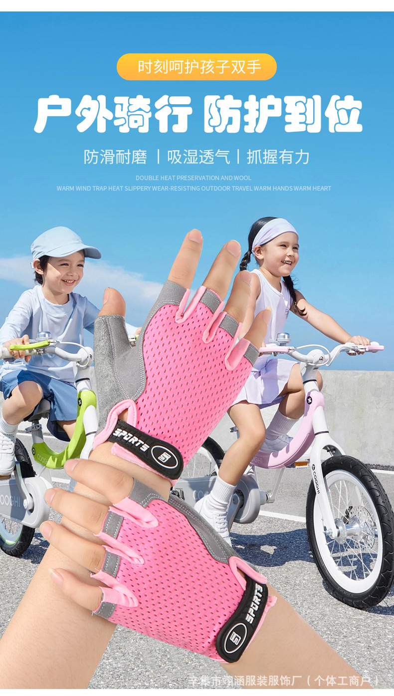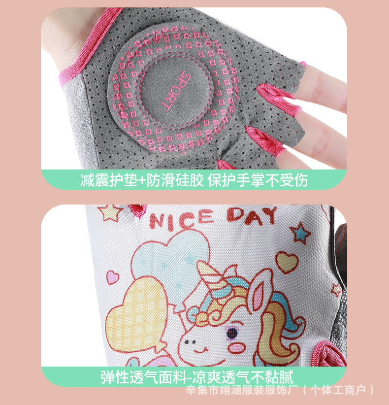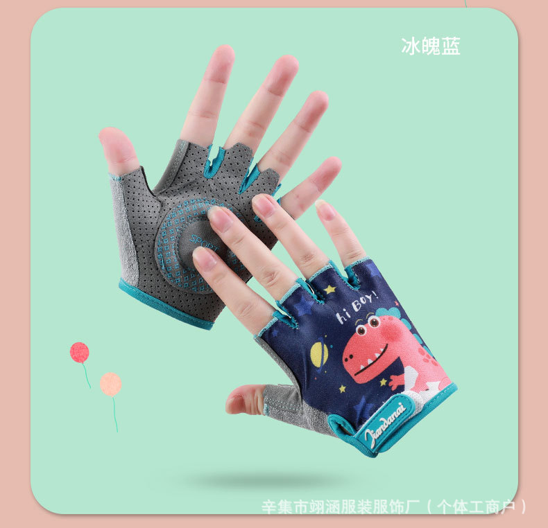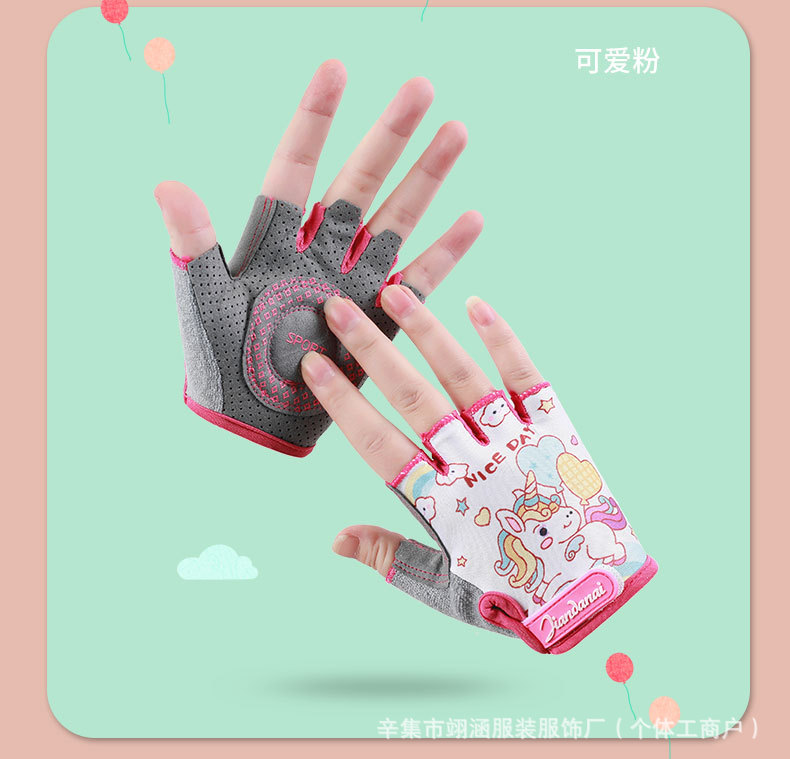 어린이 나비 그물 반 손가락 사이클링 스포츠 장갑 미끄럼 방지, 내마모성, 통기성 및 땀 흡수 여름 자외선 차단제 암벽 등반 훈련 장갑