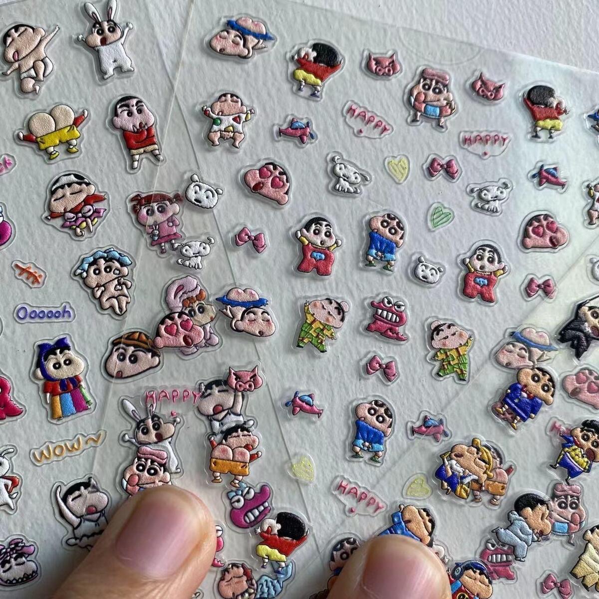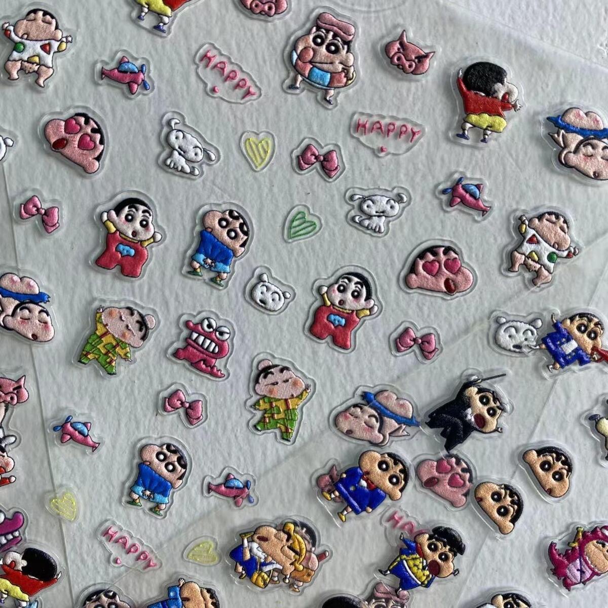 크레용 신짱 다이나믹 슈퍼맨 귀여운 엠보싱 네일 아트 스티커 귀여운 카메라 작은 흰색 초보자 계정 스티커스토어 가기