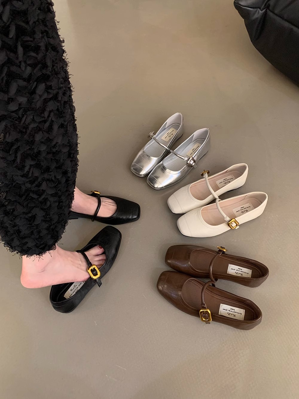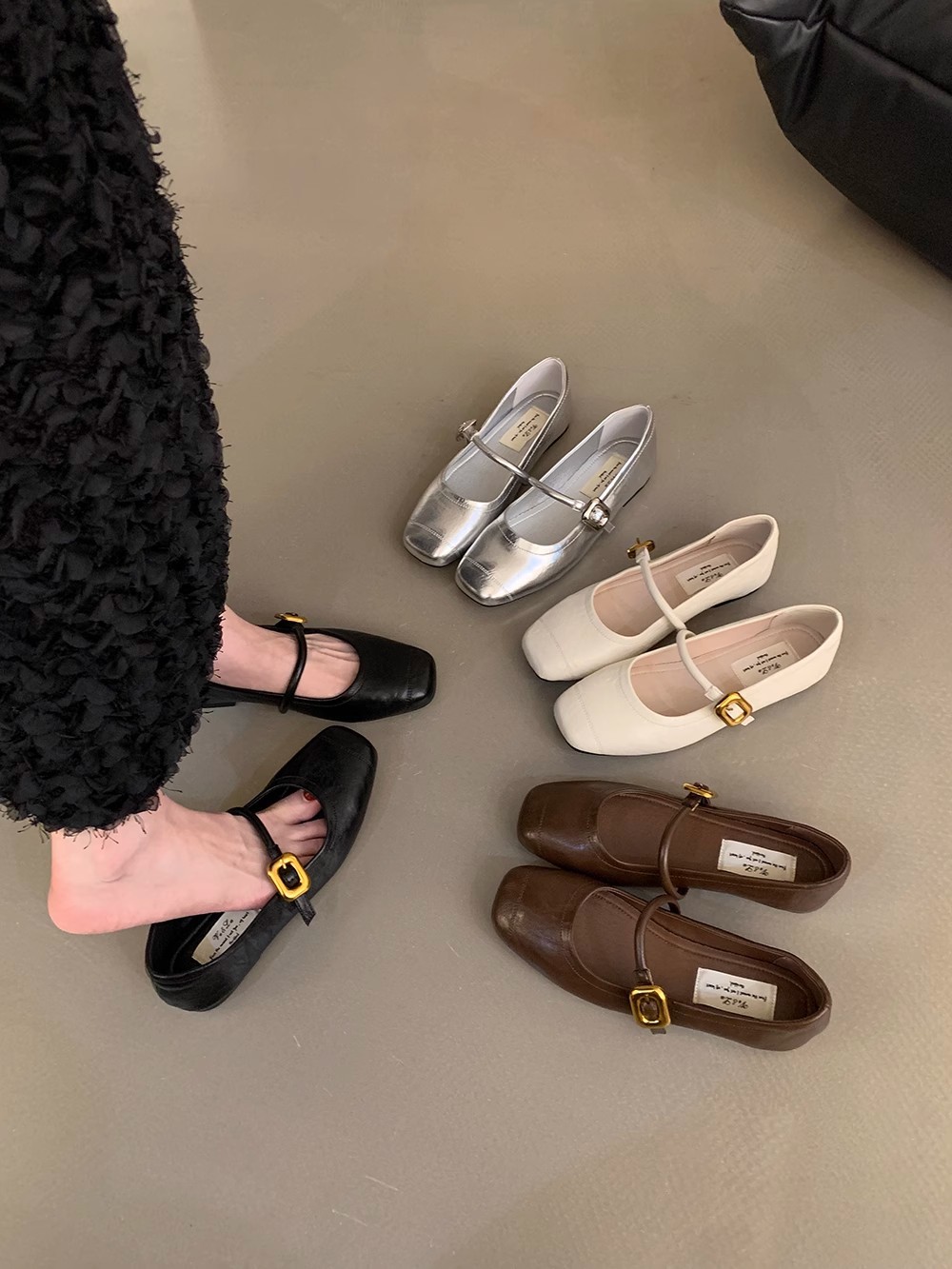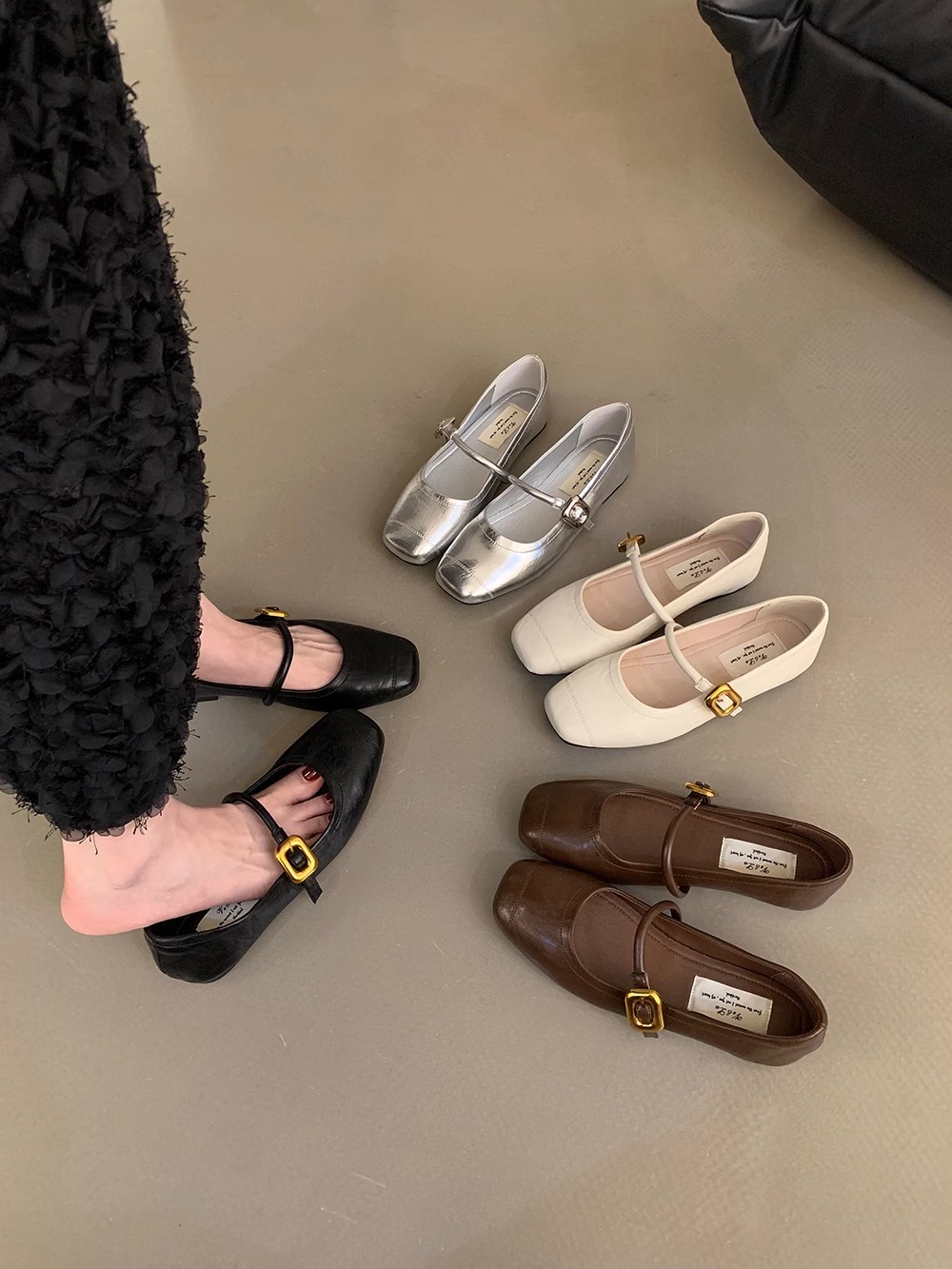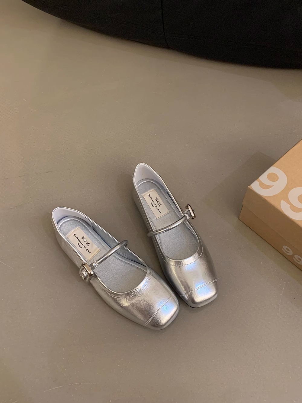 한국식 올매치 싱글 스트랩 신발 실버 여성 신발 봄과 여름 프랑스 스타일 레트로 메리 제인 신발 플랫 신발 작은 가죽 신발스토어 가기