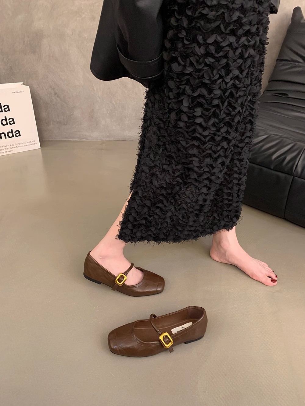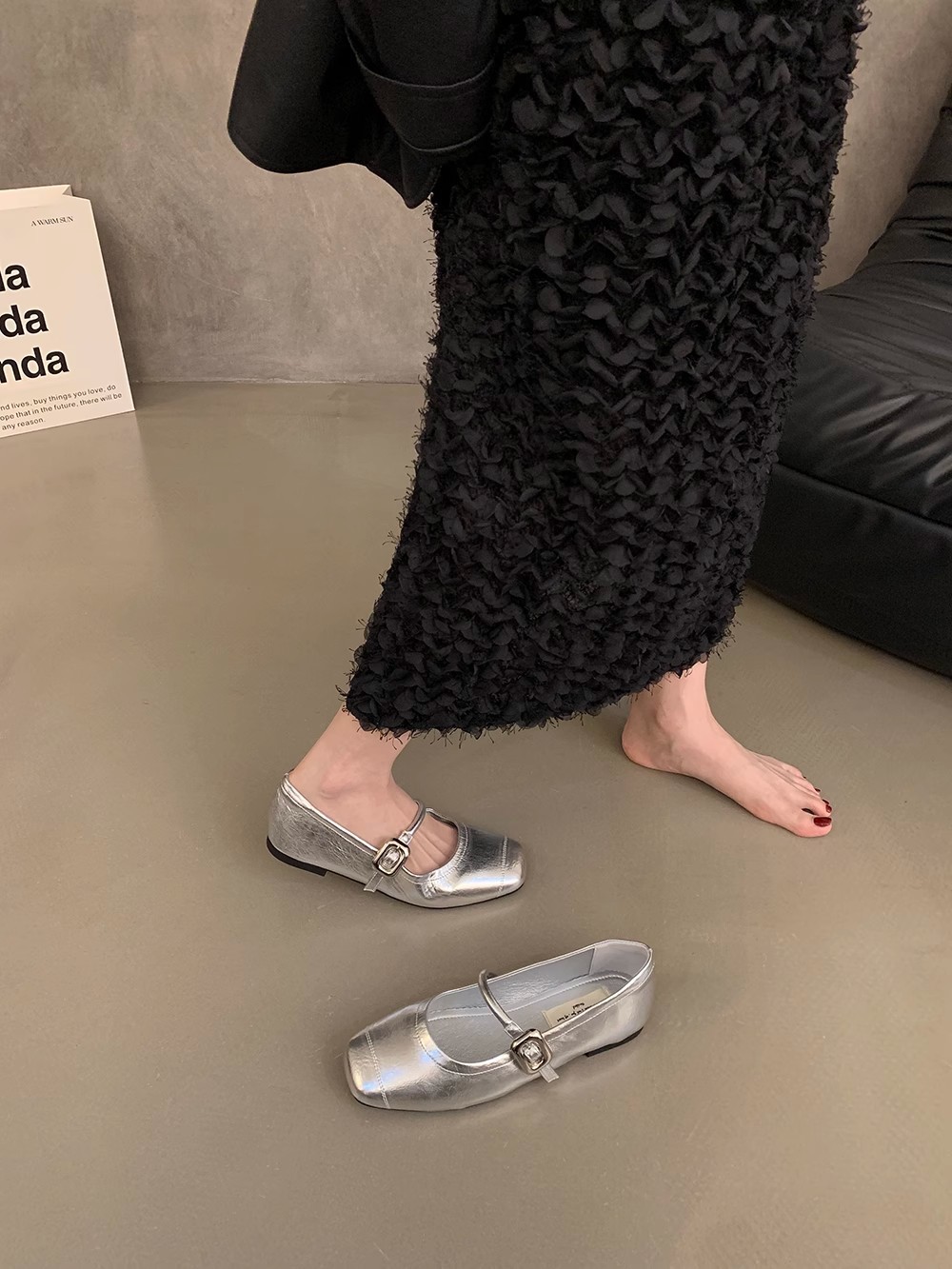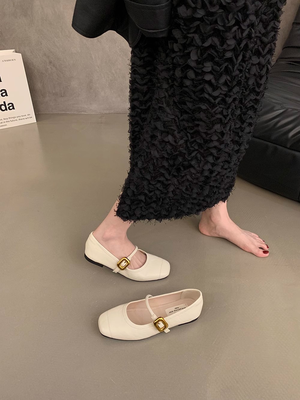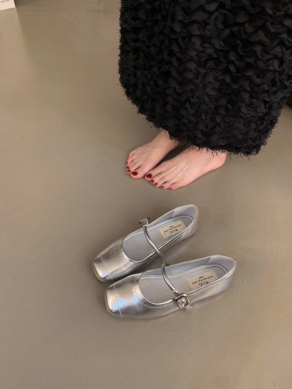 한국식 올매치 싱글 스트랩 신발 실버 여성 신발 봄과 여름 프랑스 스타일 레트로 메리 제인 신발 플랫 신발 작은 가죽 신발스토어 가기