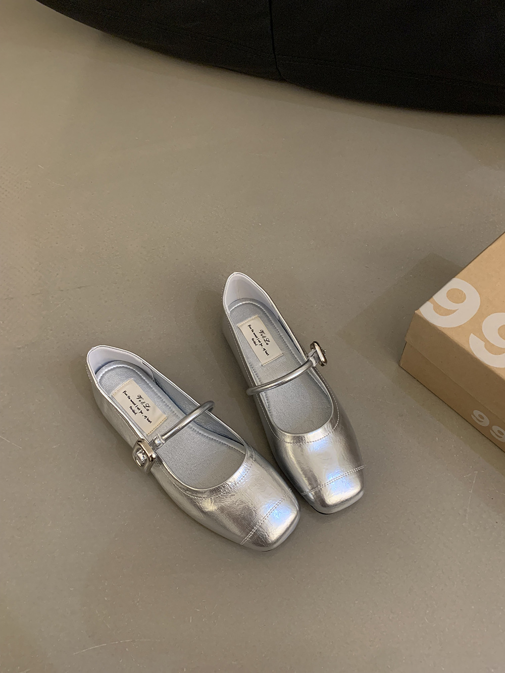 한국식 올매치 싱글 스트랩 신발 실버 여성 신발 봄과 여름 프랑스 스타일 레트로 메리 제인 신발 플랫 신발 작은 가죽 신발