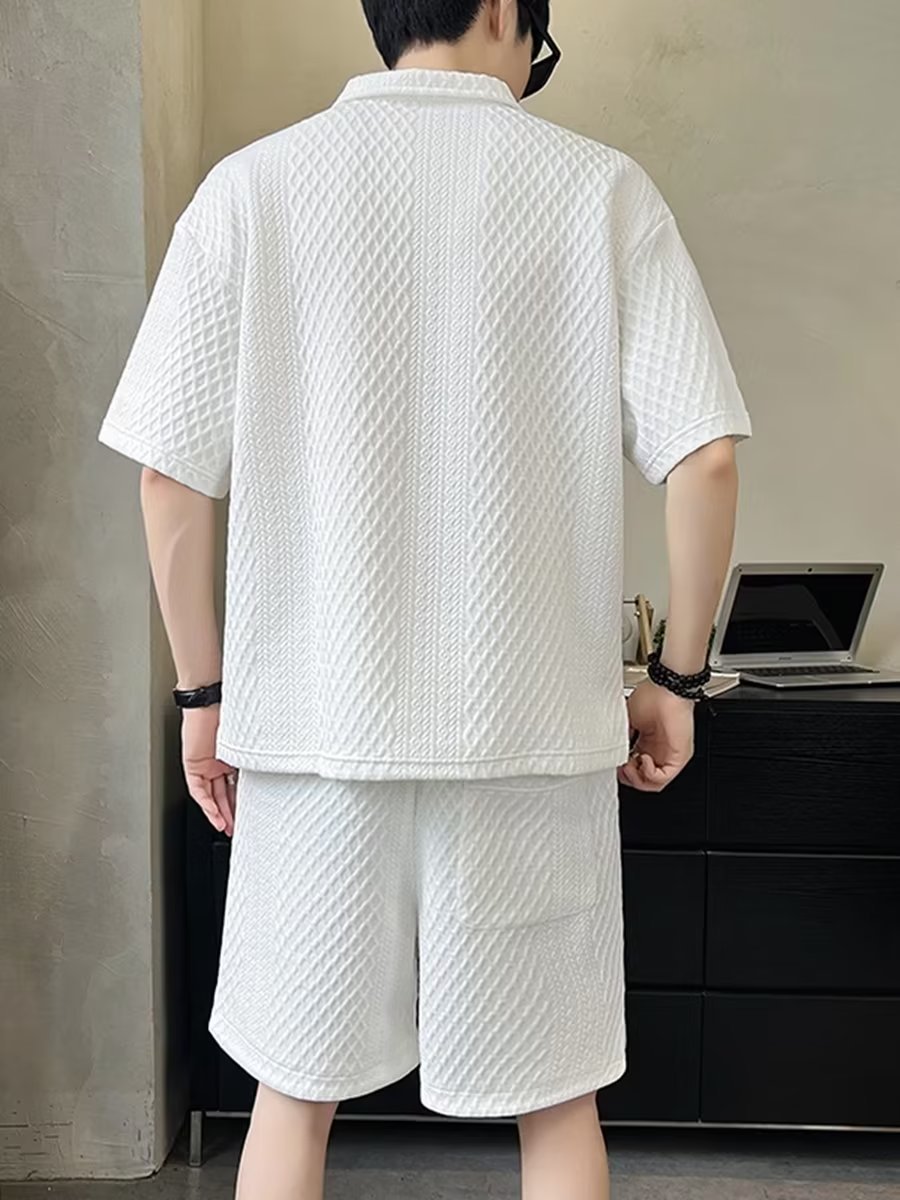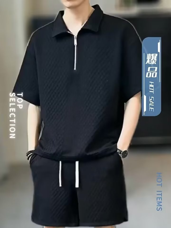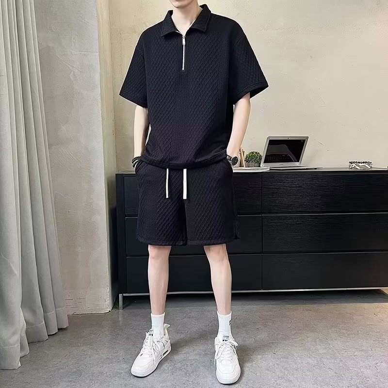 Waffe 미국 캐주얼 스포츠 세트 남자 여름 플러스 사이즈 잘 생긴 유행 반바지 남성용 반팔 여름 원피스스토어 가기