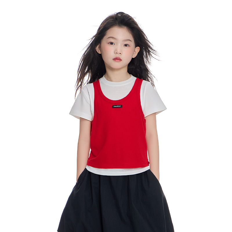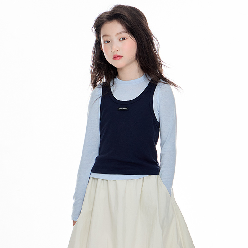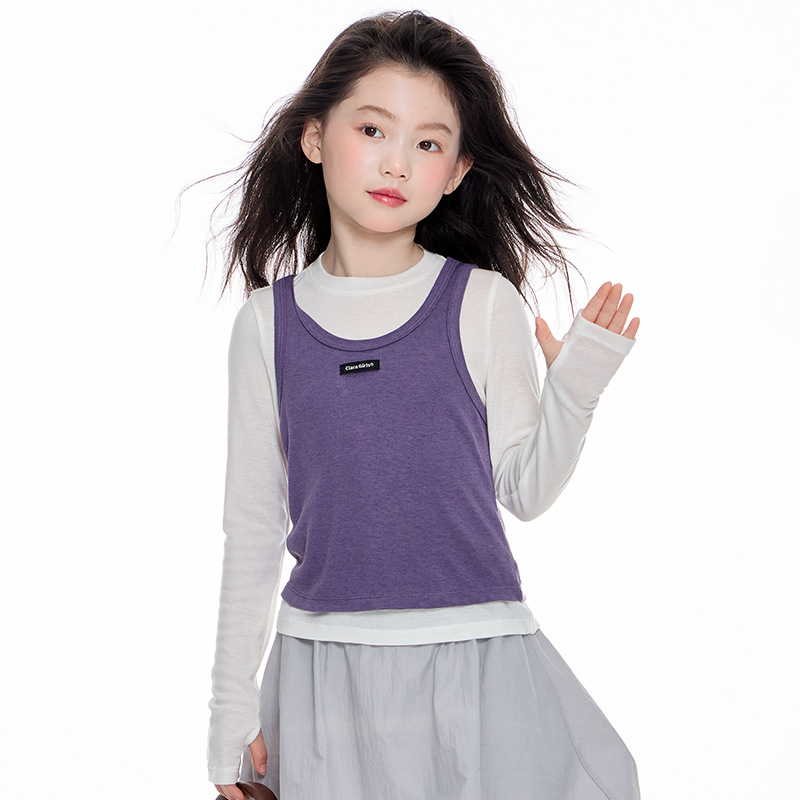 여자 미우 울 티셔츠 2025 여름 새 어린이 스포츠 올매치 긴팔베이스 조끼 캐주얼 탑