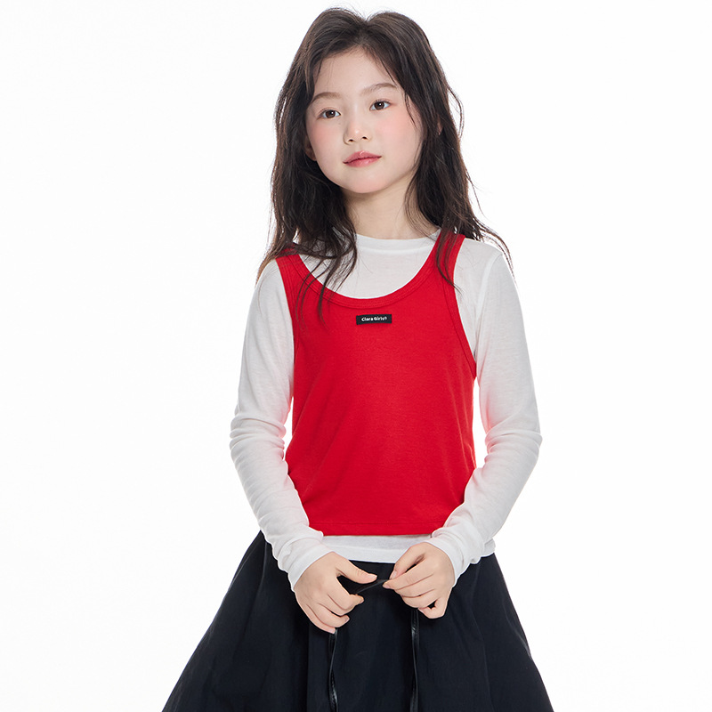 여자 미우 울 티셔츠 2025 여름 새 어린이 스포츠 올매치 긴팔베이스 조끼 캐주얼 탑스토어 가기