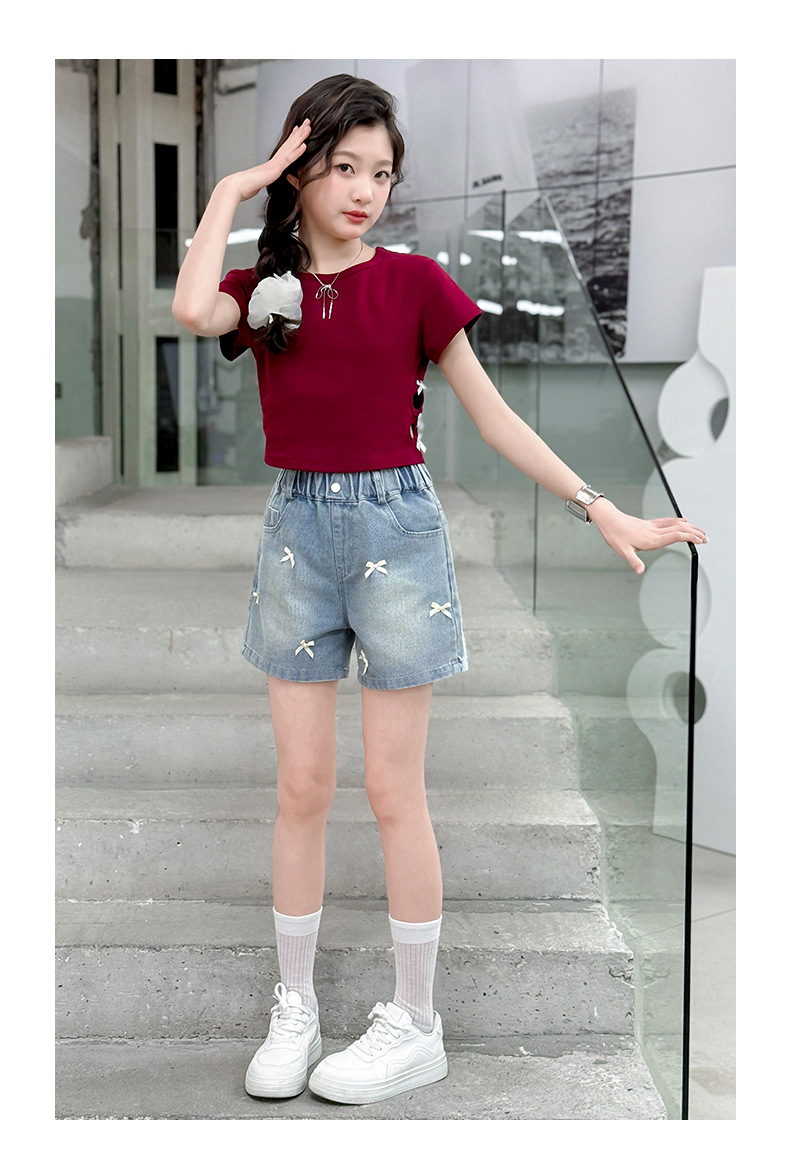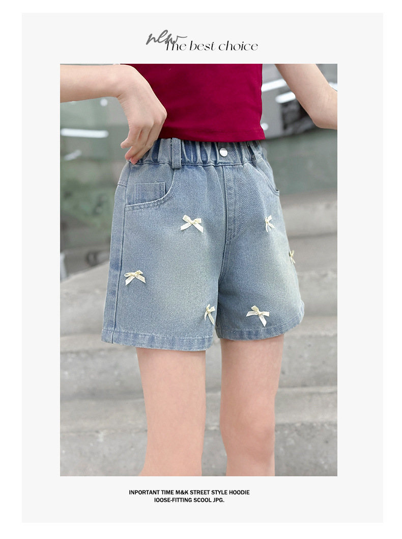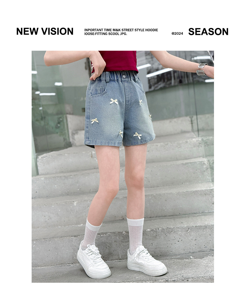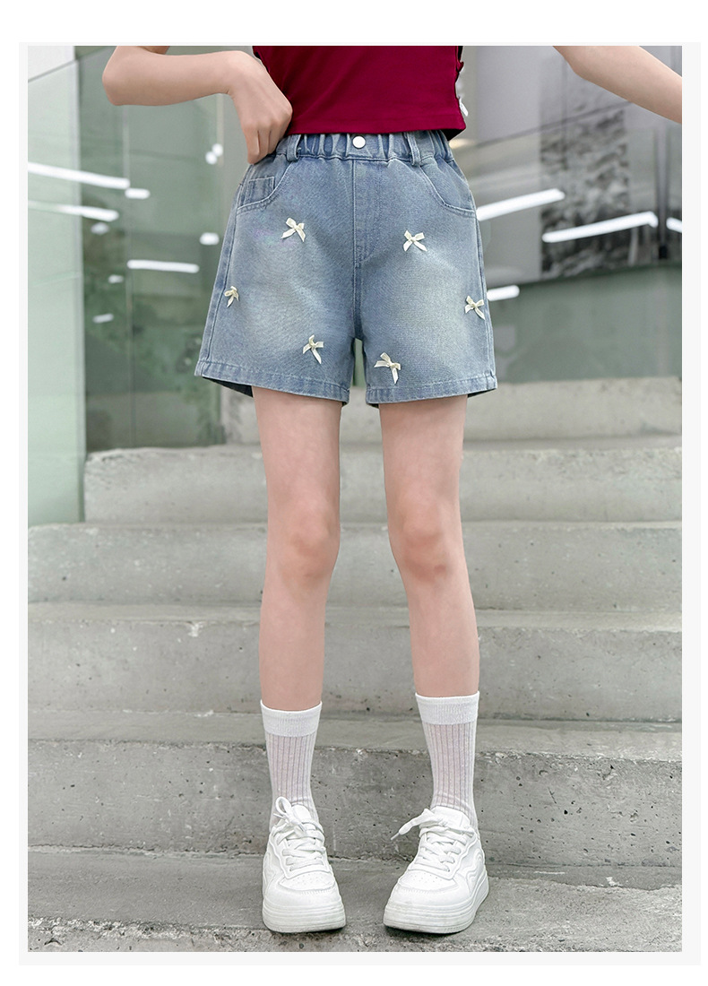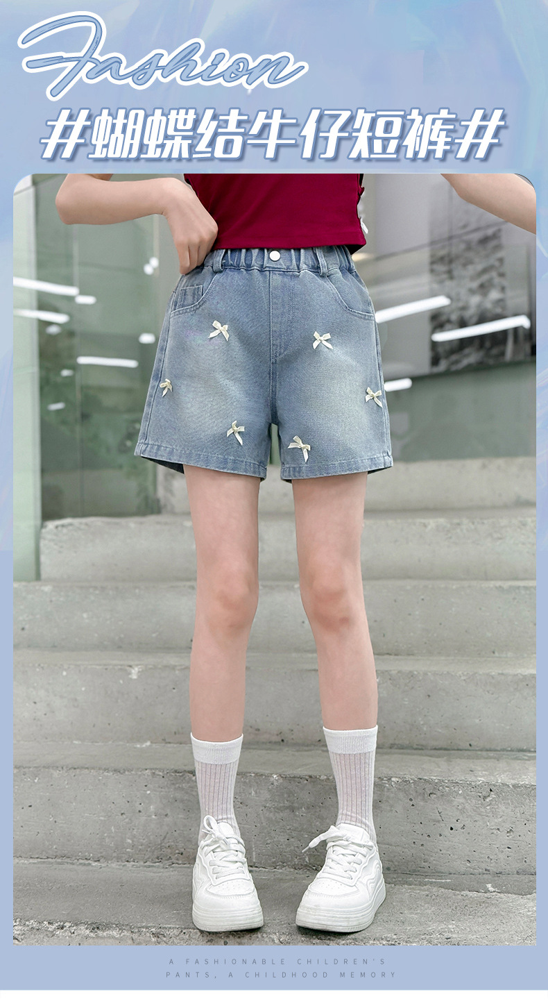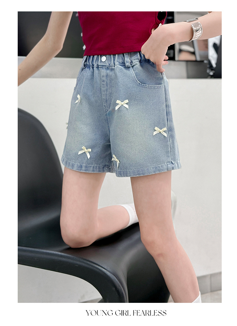 여자 여름 데님 반바지 2025 새로운 패션 여자 캐주얼 얇은 보우 핫 팬츠 크로스 보더 최신 트렌드스토어 가기
