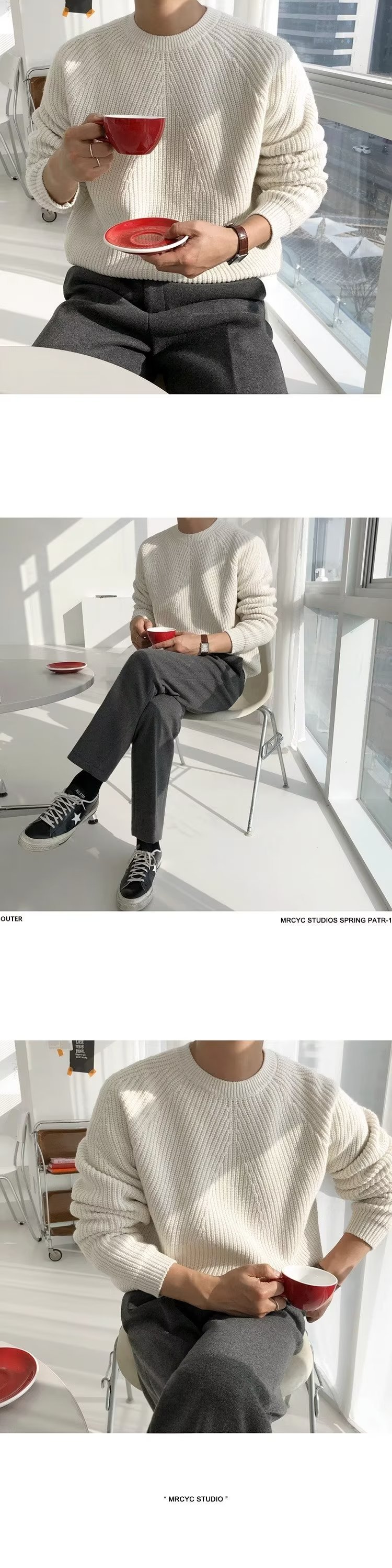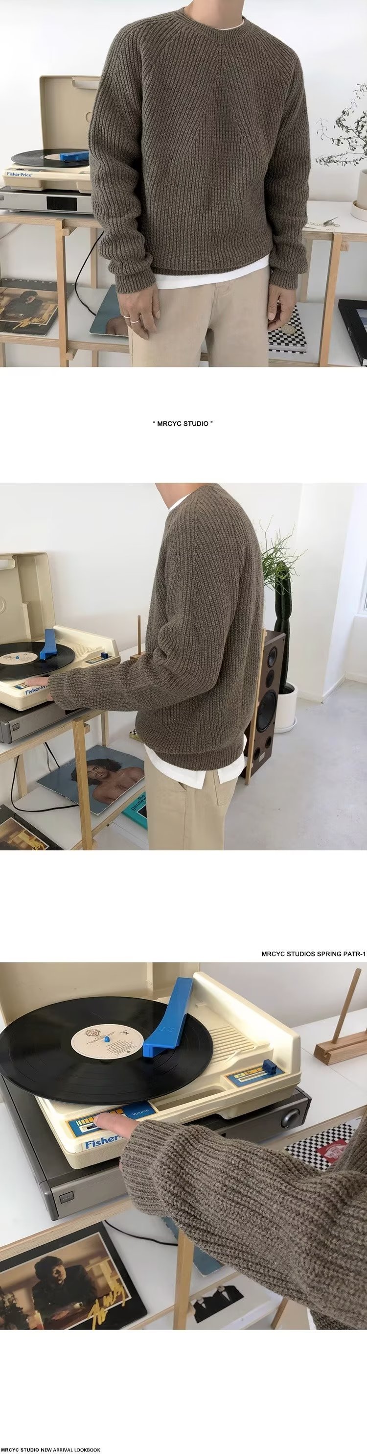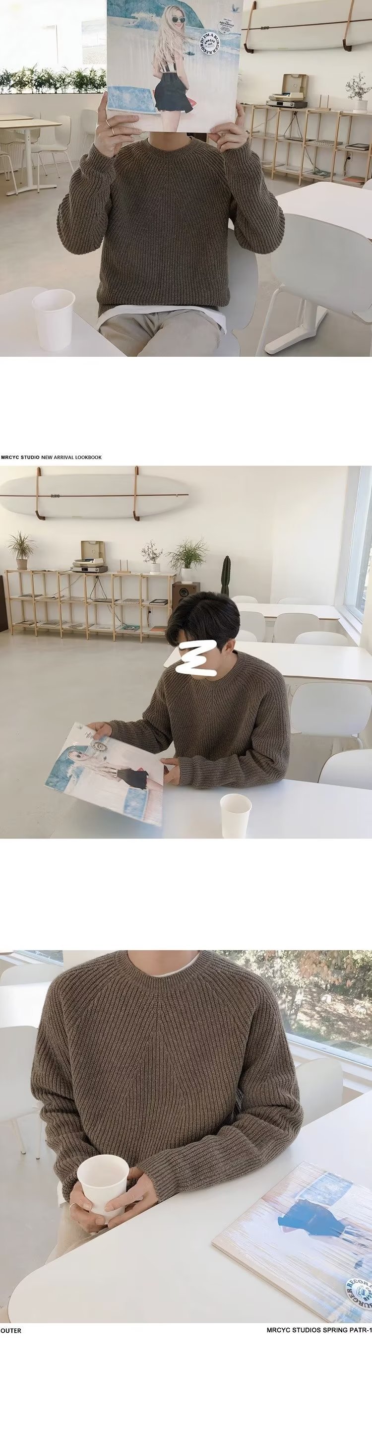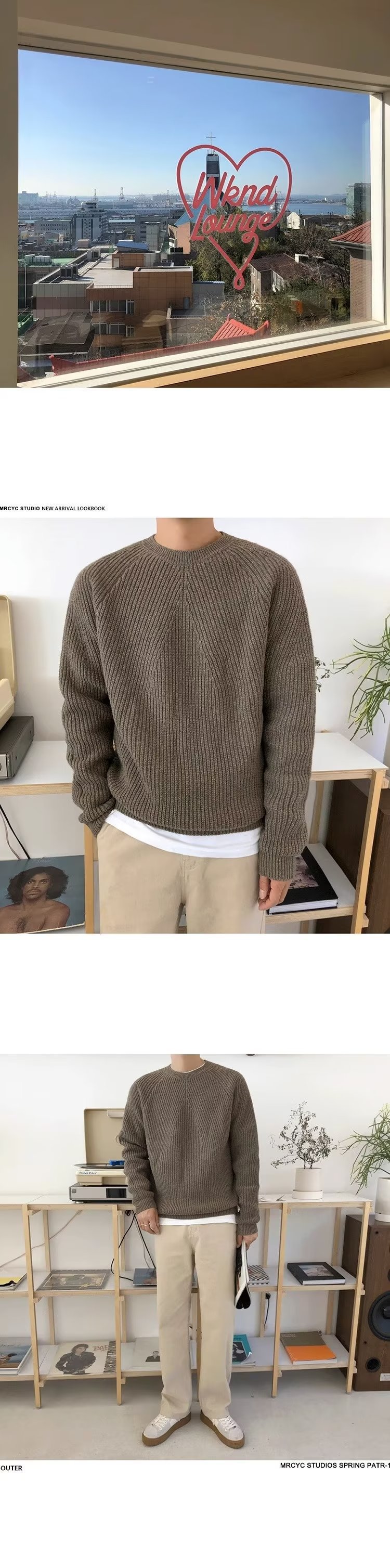 트렌디한 원피스 코트, 스웨터, 베이스 레이어, 가을 겨울 한국식 라운드 넥 루즈한 새로운 스웨터 남성용 솔리드 컬러스토어 가기