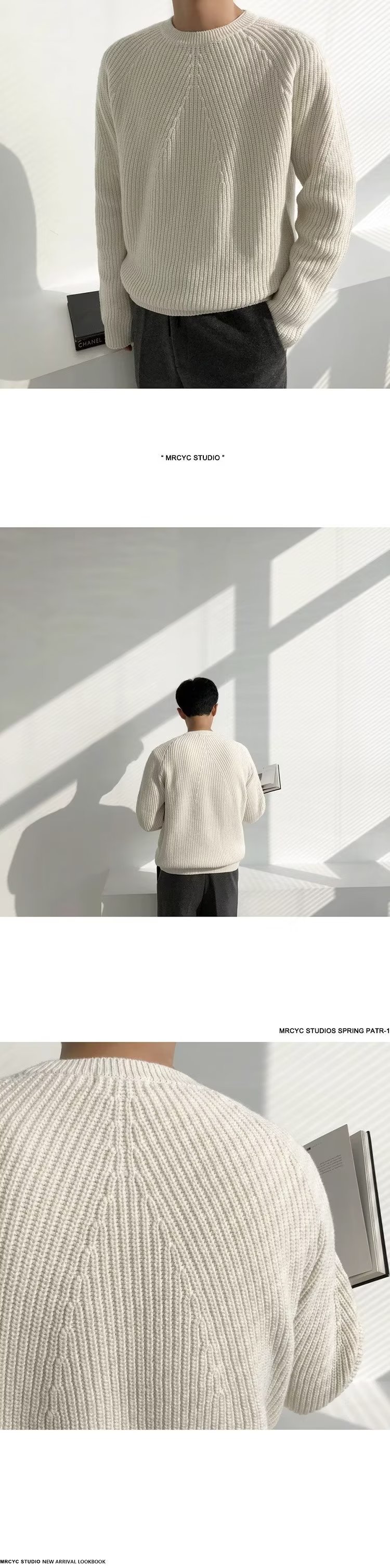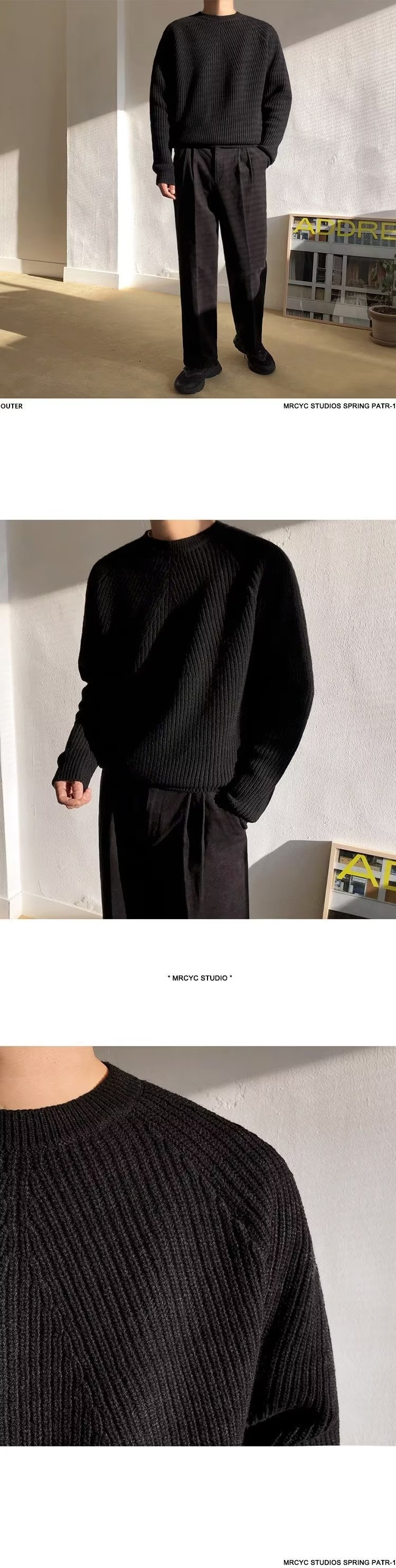 트렌디한 원피스 코트, 스웨터, 베이스 레이어, 가을 겨울 한국식 라운드 넥 루즈한 새로운 스웨터 남성용 솔리드 컬러
