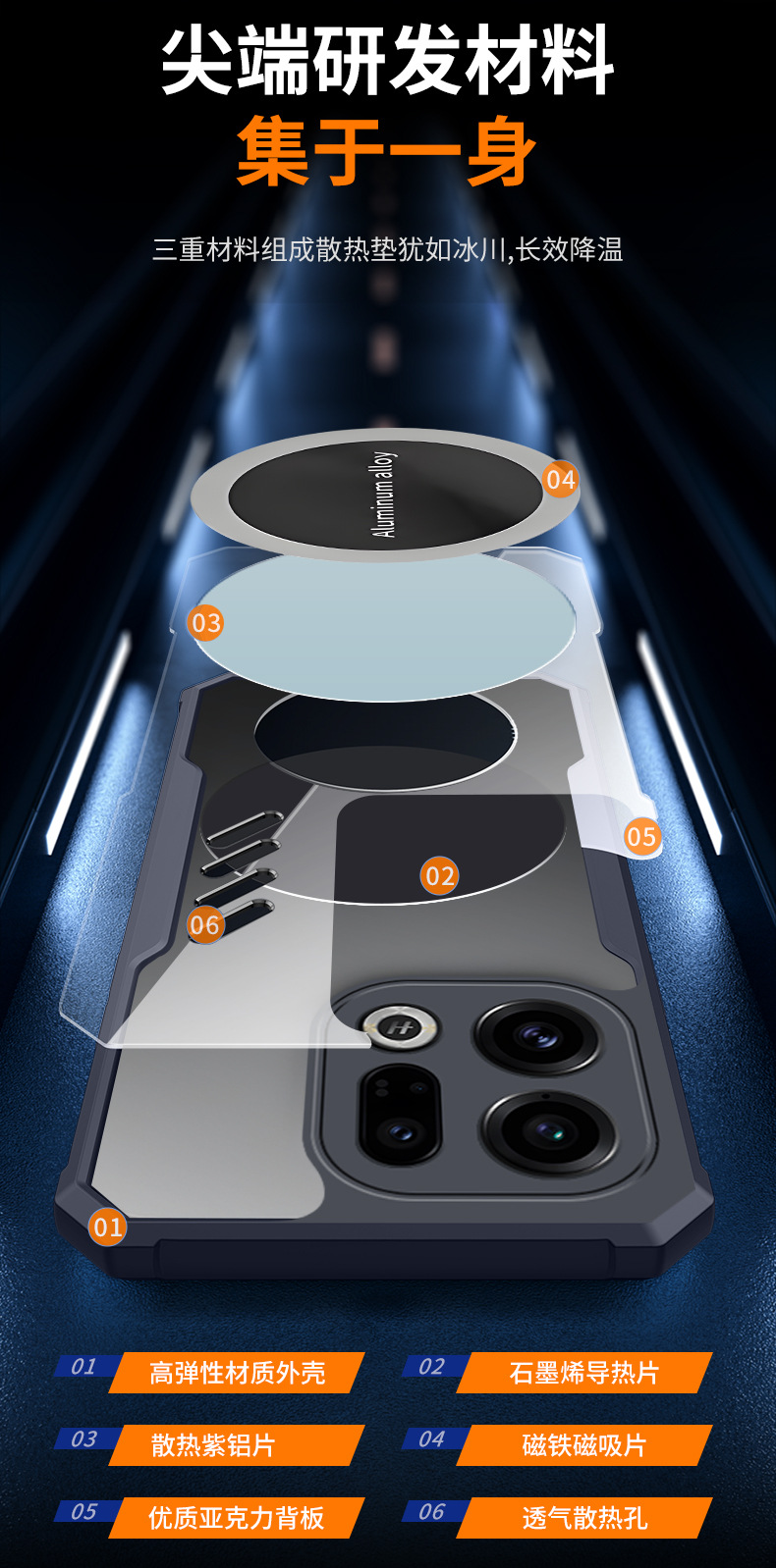 OPPO Find X9 휴대폰 케이스에 적합, 에어백 낙하 방지 소프트 케이스, A6Pro 그래핀 냉각 자석 흡착 케이스 보호