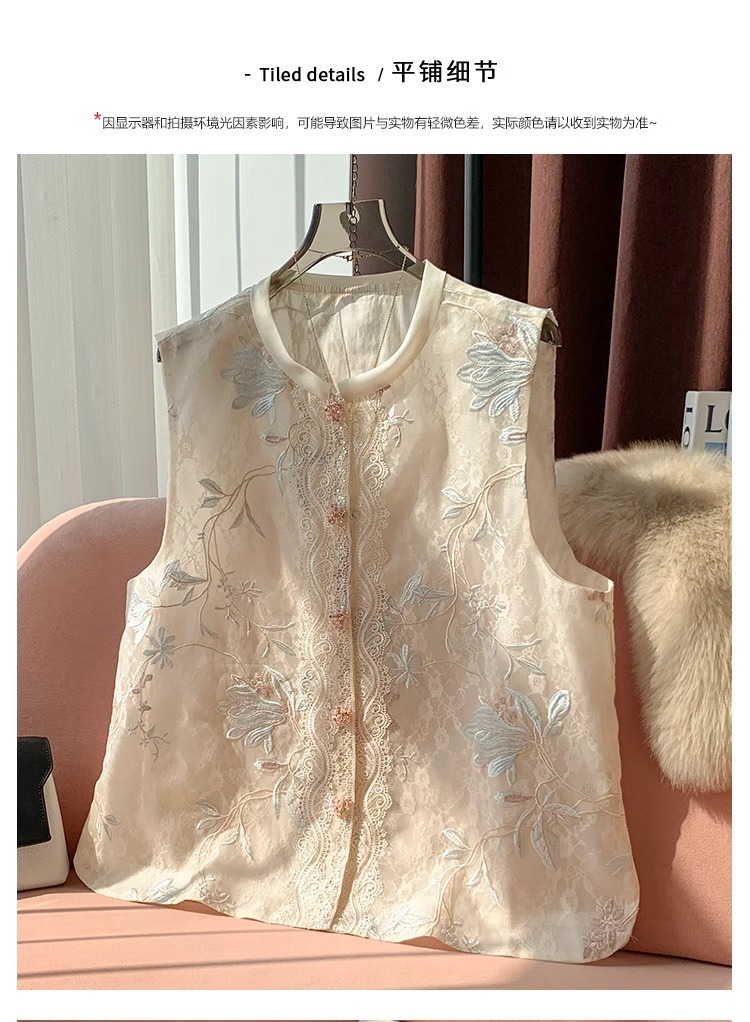 새로운 중국 스타일 국가 스타일 조끼 여름 얇은 Organza 최고 중공업 자수 조끼 골동품 여성 조끼