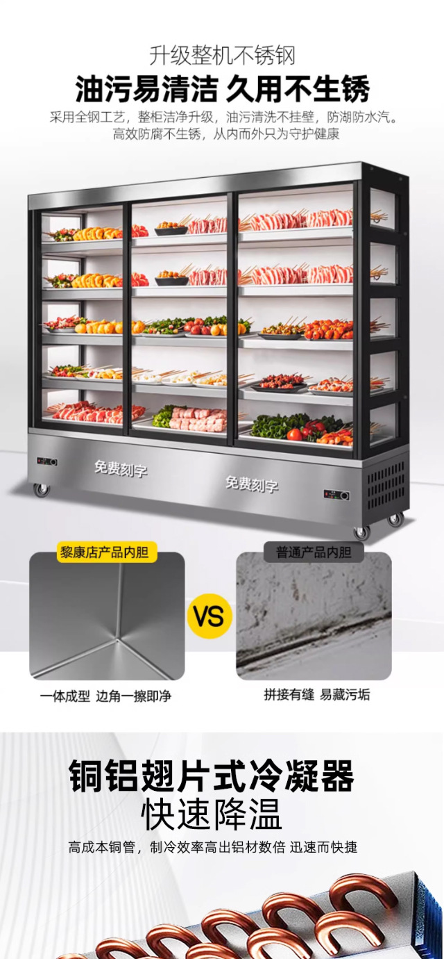 꼬치냉장진열장, 스테인리스꼬치튀김주문장, 신선보관장, 전골점 매운탕장, 바비큐냉장고