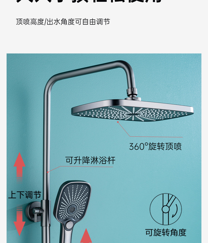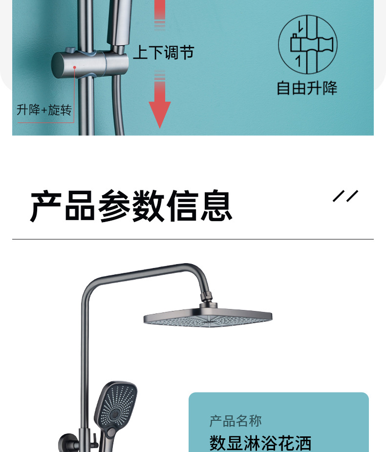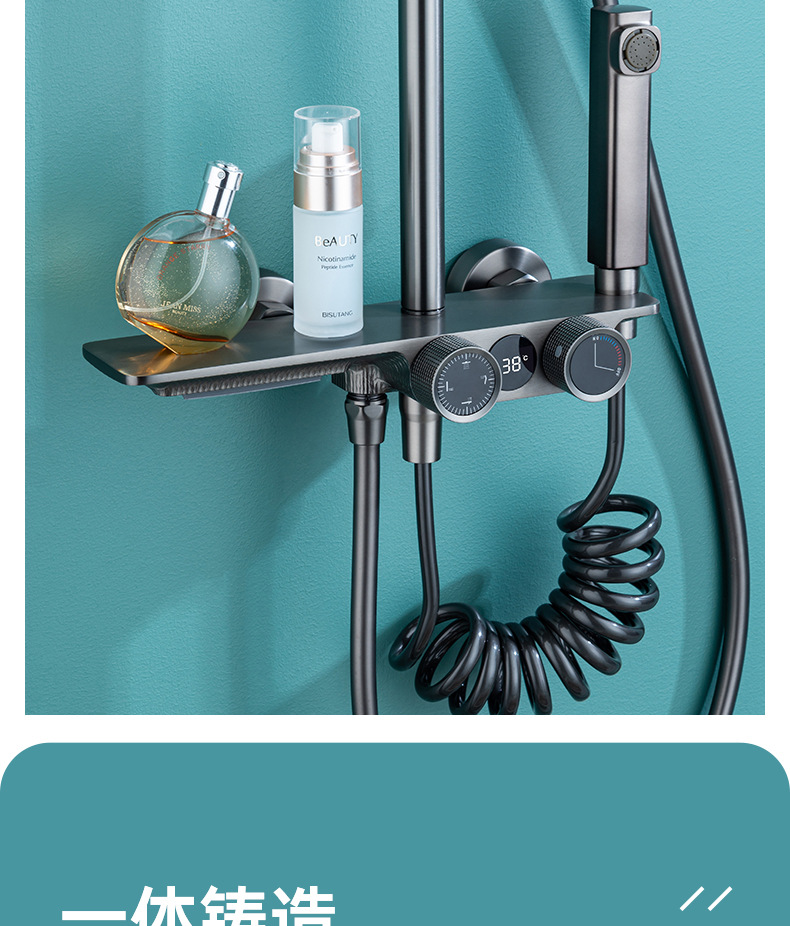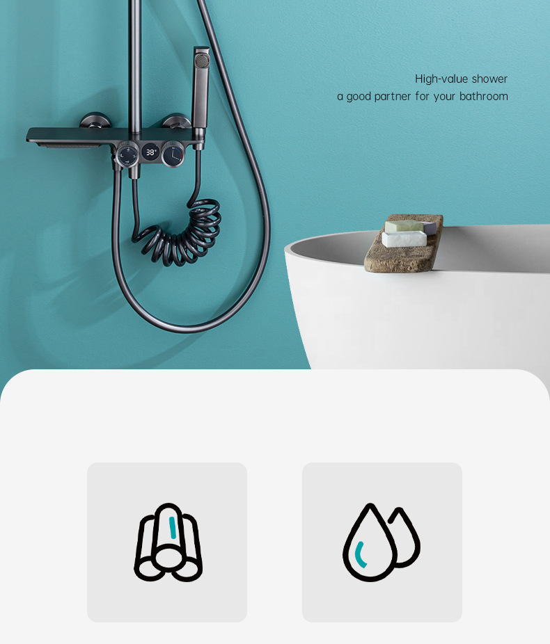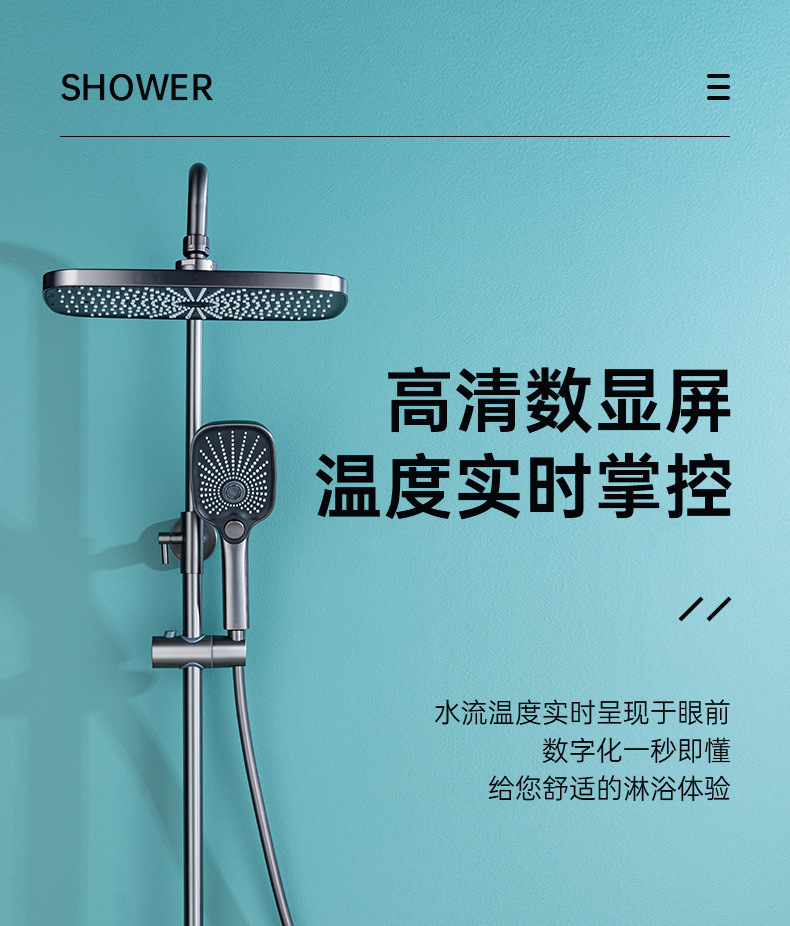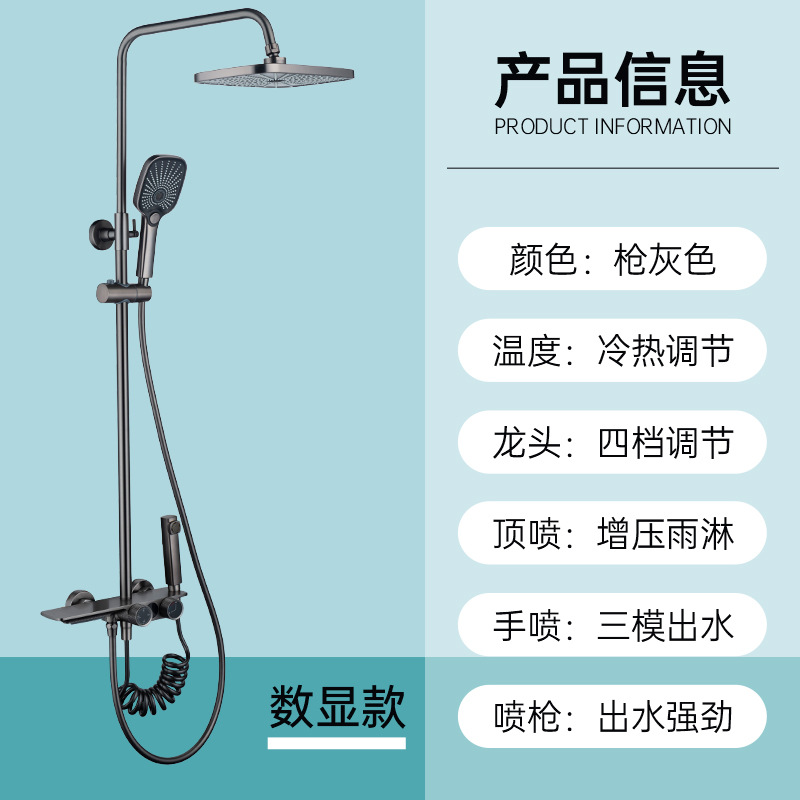 Hengjie 지능형 디지털 디스플레이 샤워 세트 홈 욕실 전체 구리 본체 가압 레인 샤워 샤워 노즐 샤워