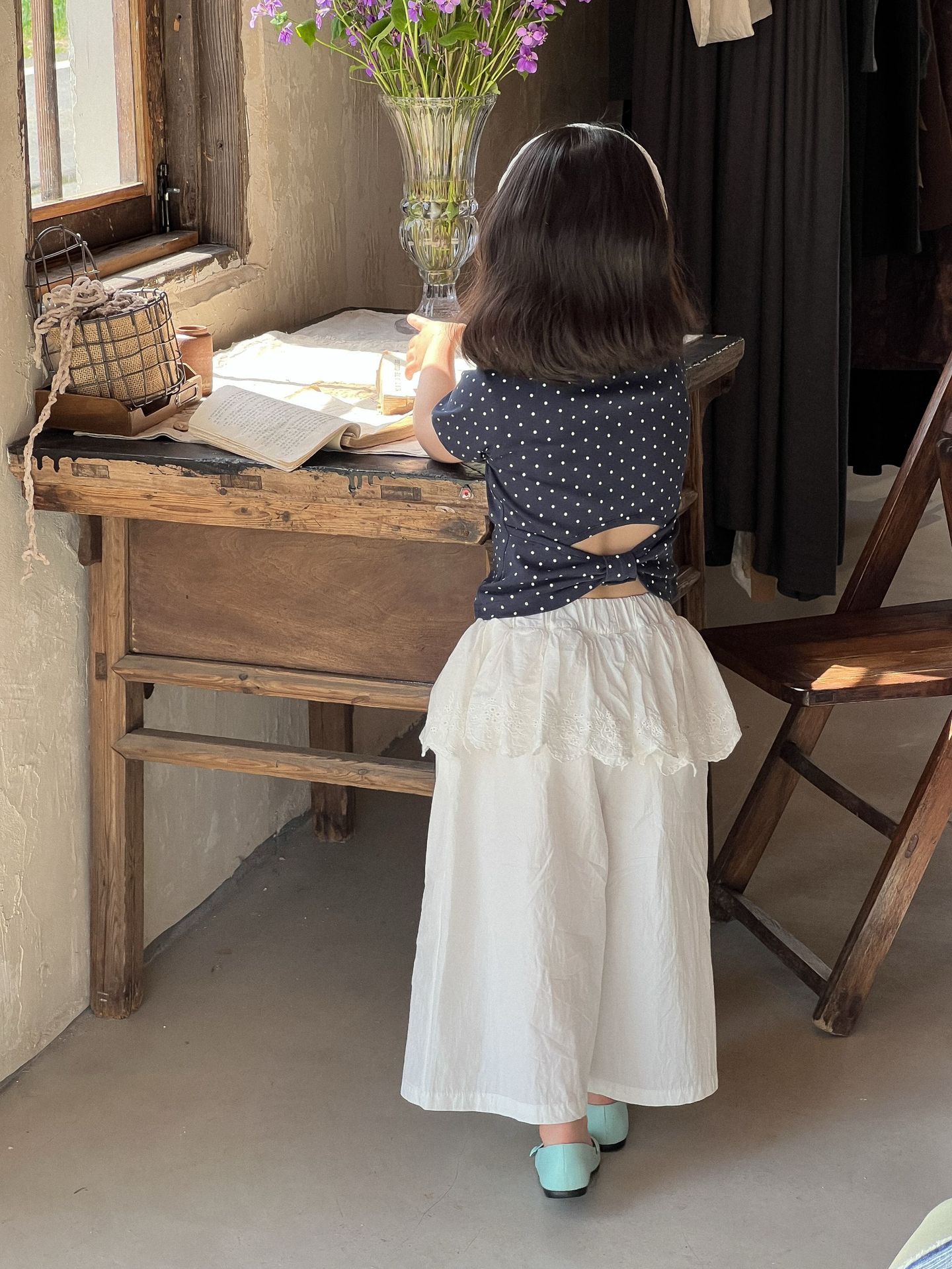 女童套装精棉花边立领上衣阔腿裤2026夏装新款无袖花边两件套童装