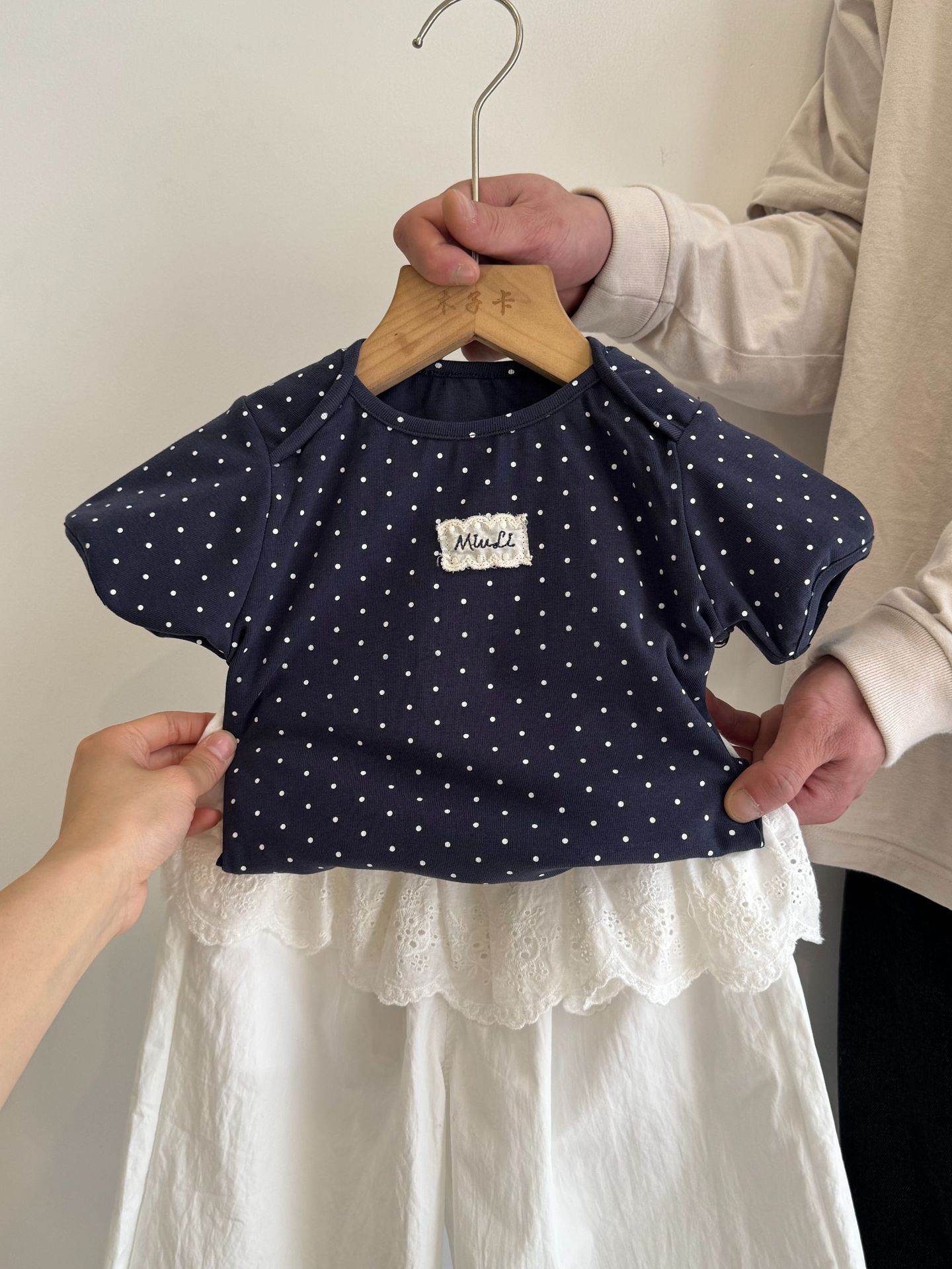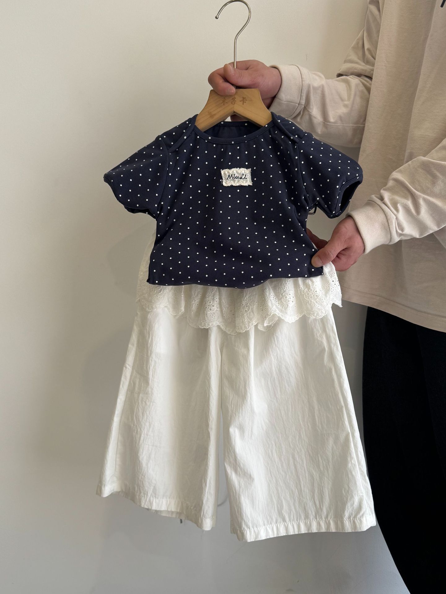 2026春夏季新款童装韩版儿童棉布蕾丝韩系女童娃娃领花边飞袖套装