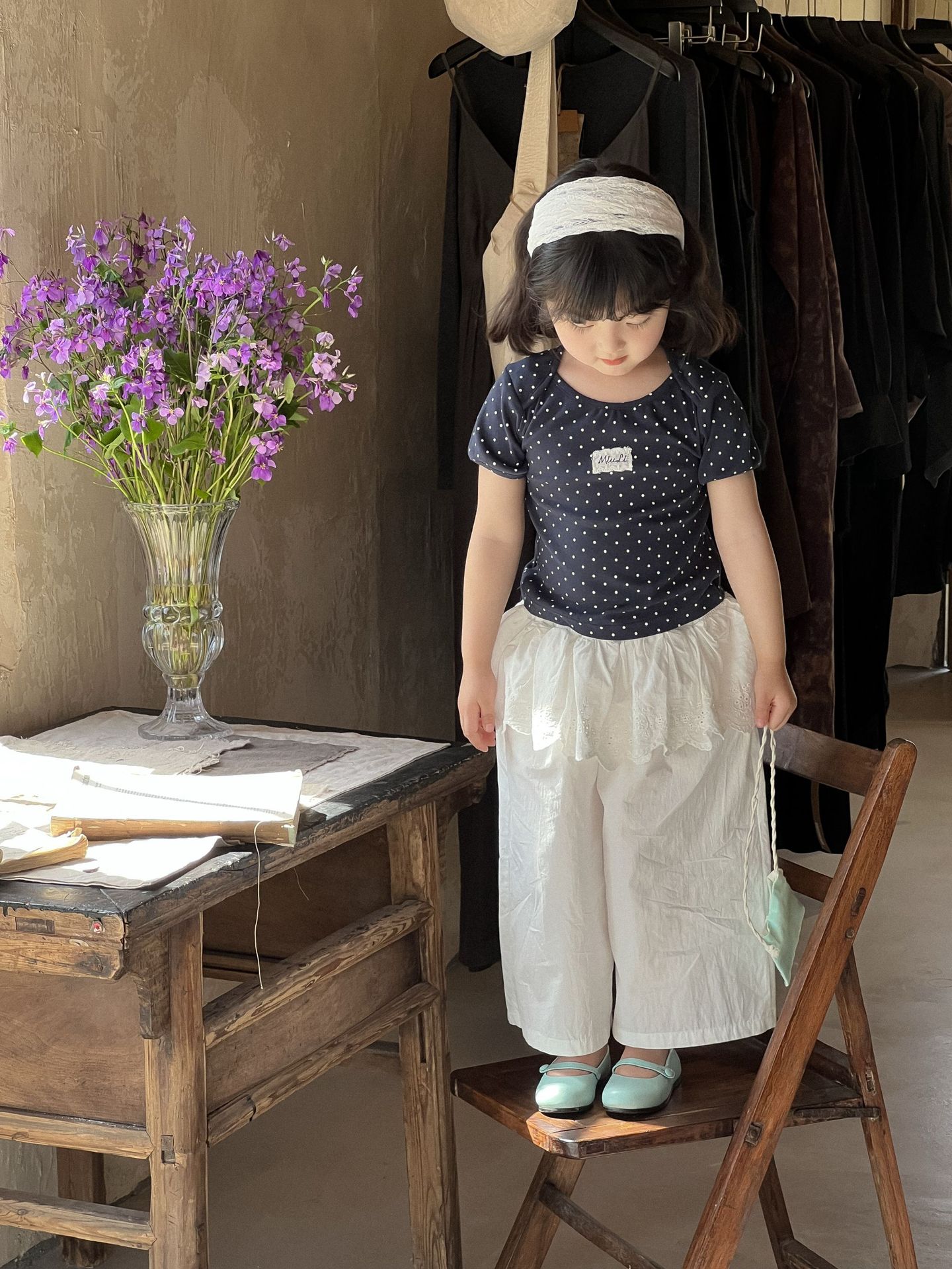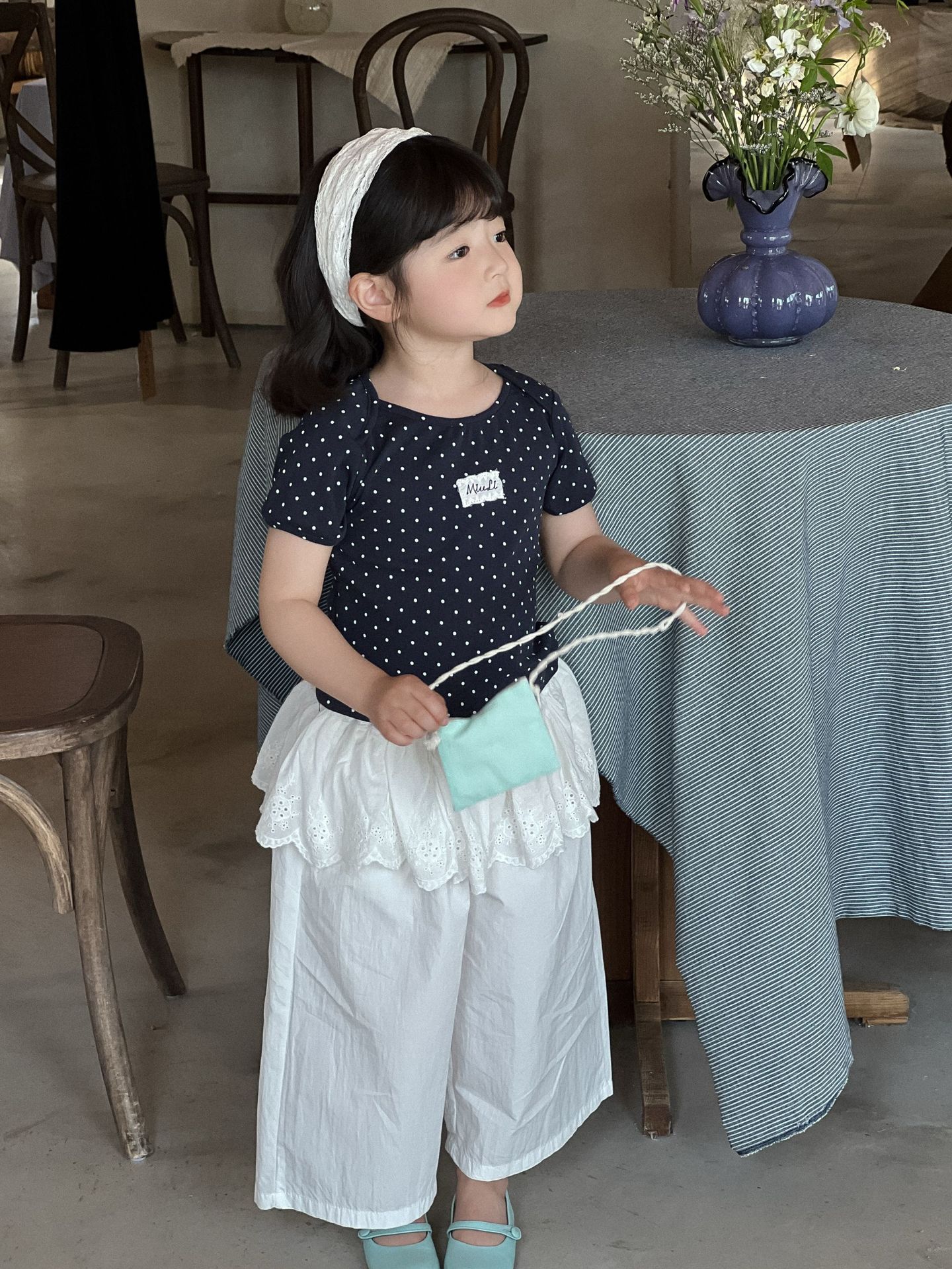 2026년 여름 신상 여아 반팔 티셔츠, 여아용 세련되고 패셔너블한 한국 스타일 라운드넥 루즈핏 물방울 무늬 아동 상의스토어 가기
