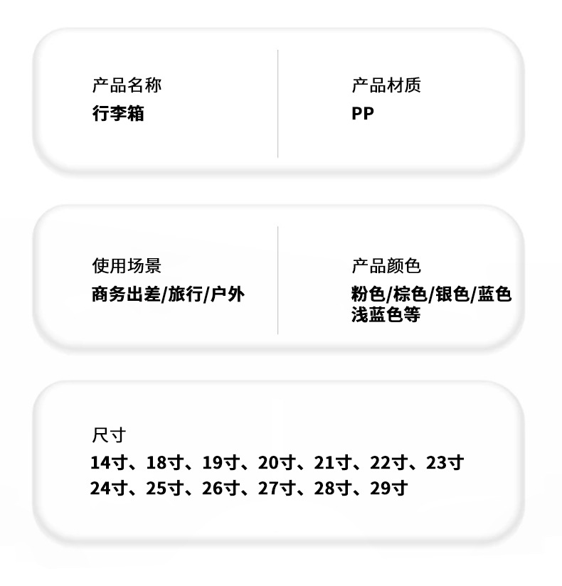 고급 PP 상자 무음 휠 범용 휠 20인치 24inch 28inch 대량 도매 수하물 PP 상자