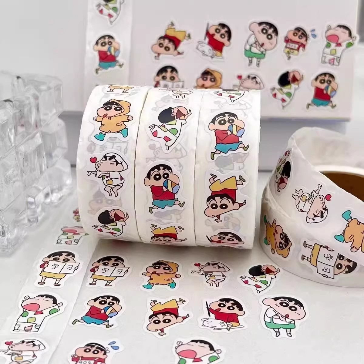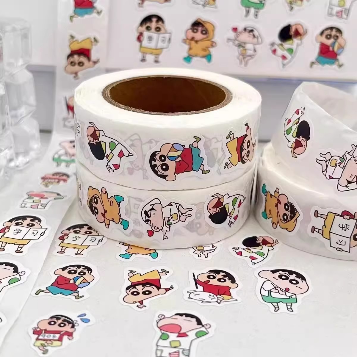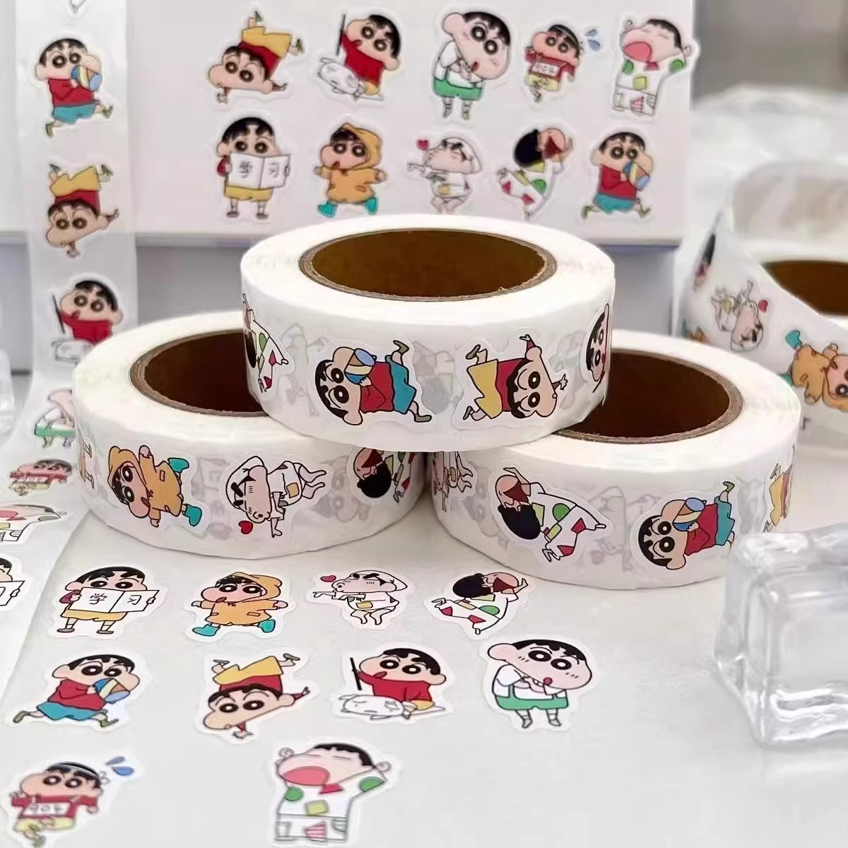 크레용 신짱 롤 스티커 ins 고급스러운 만화 귀여운 테이프 자체 접착 핸드북 장식 도트 씰링 스티커