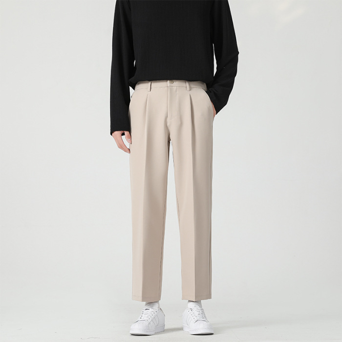 봄과 여름 새로운 캐주얼 작은 스트레이트 바지 느슨한 한국 유행 올 매치 바지 남자 10 대 바지 통근 바지스토어 가기