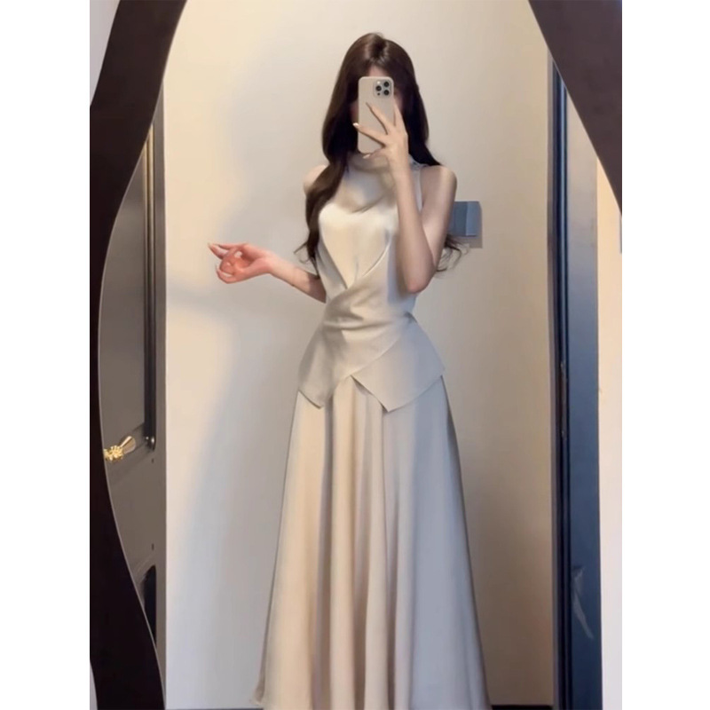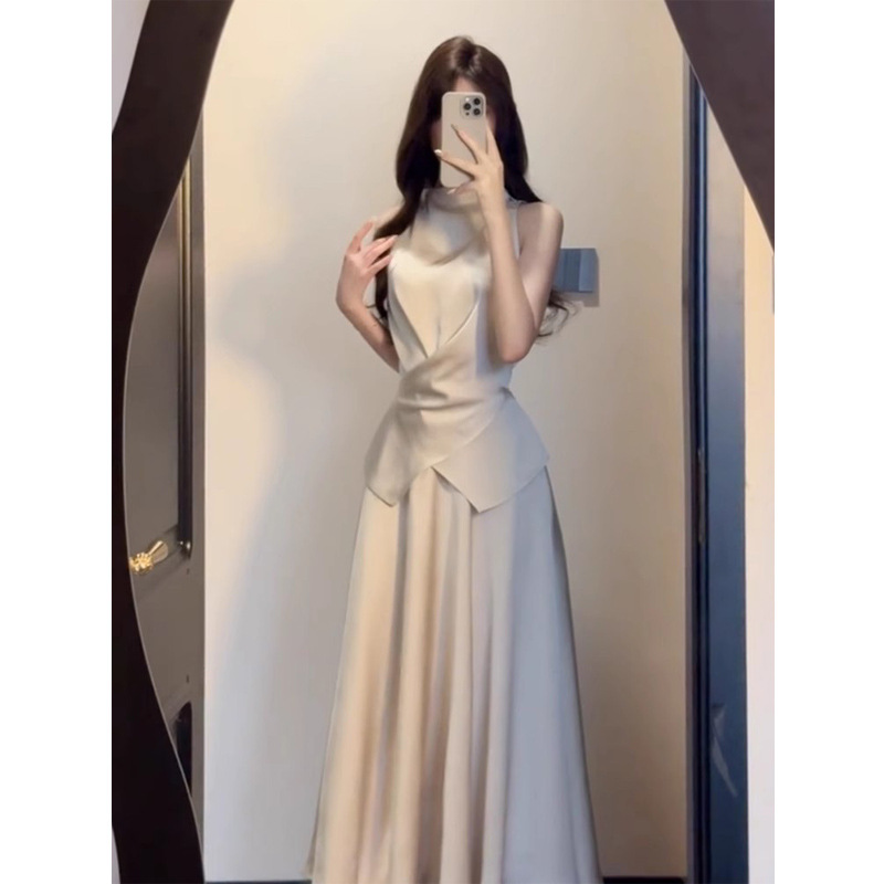 2026년 신상 고급스러운 스타일의 민소매 원피스 여성 여름 프렌치 스타일 허리라인을 강조하는 롱 원피스
