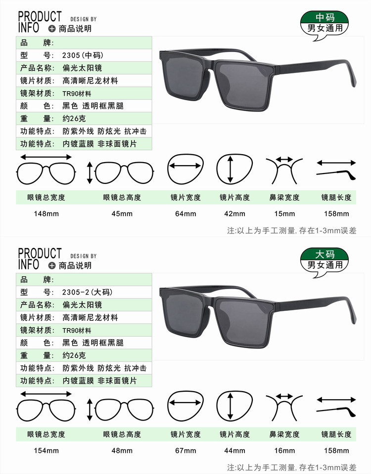 • 2305-2 C1 블랙 대형 [파란색 필름 코팅 편광렌즈]