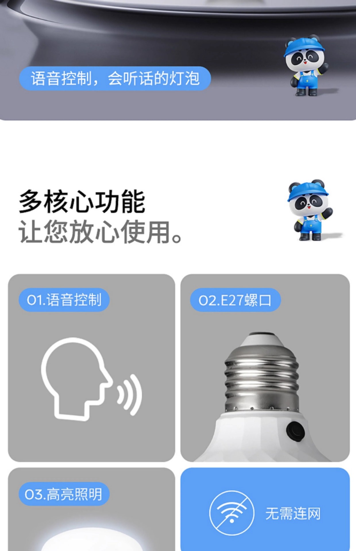 음성 제어 led 에너지 절약 램프 인공 지능 음성 제어 전구 슈퍼 민감한 토크 턴 조명 끄기 램프 나사 전구