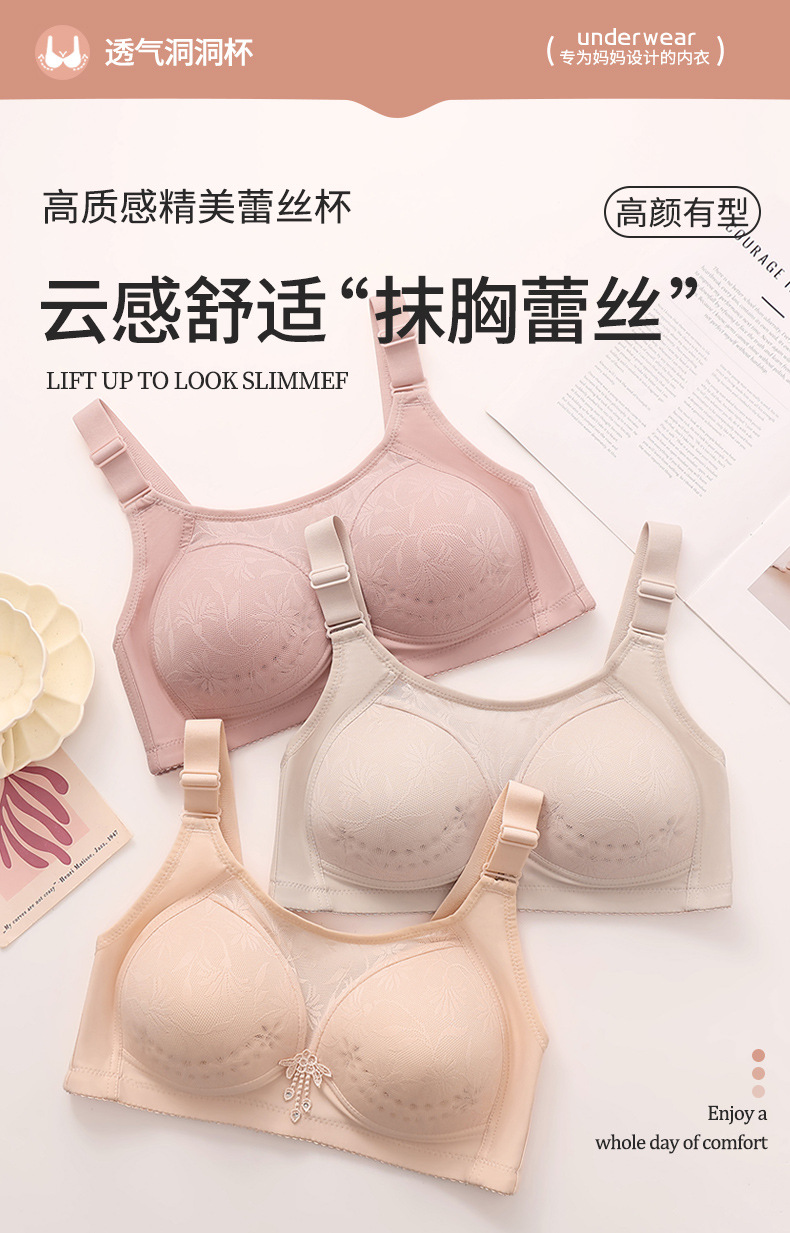 새로운 크로스보더 브라, 대형 사이즈, 풀컵, 편안하고 통기성이 좋은 얇은 중년 엄마 통기성 홀컵 속옷스토어 가기
