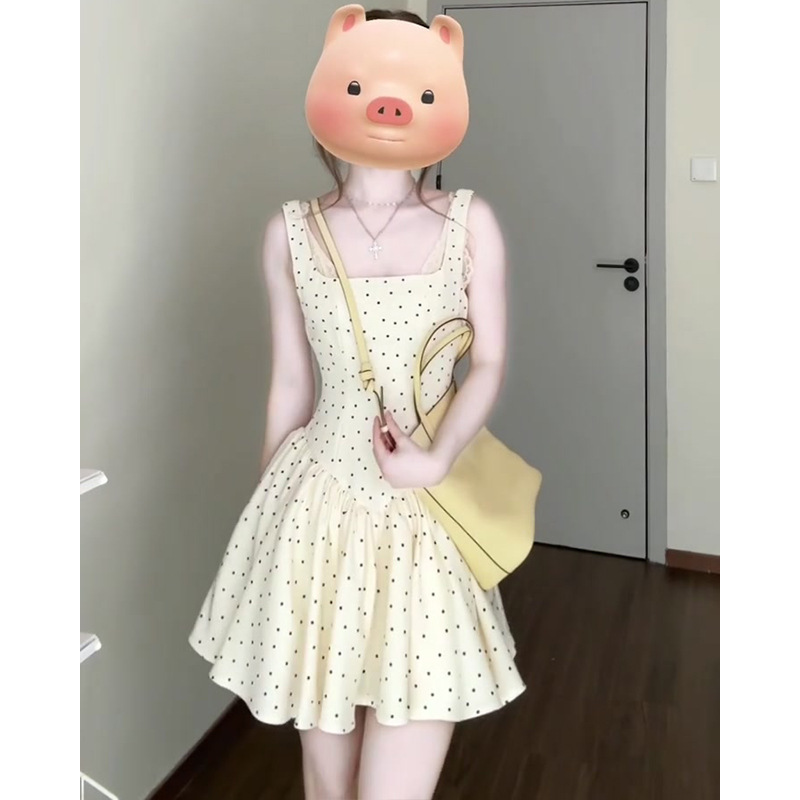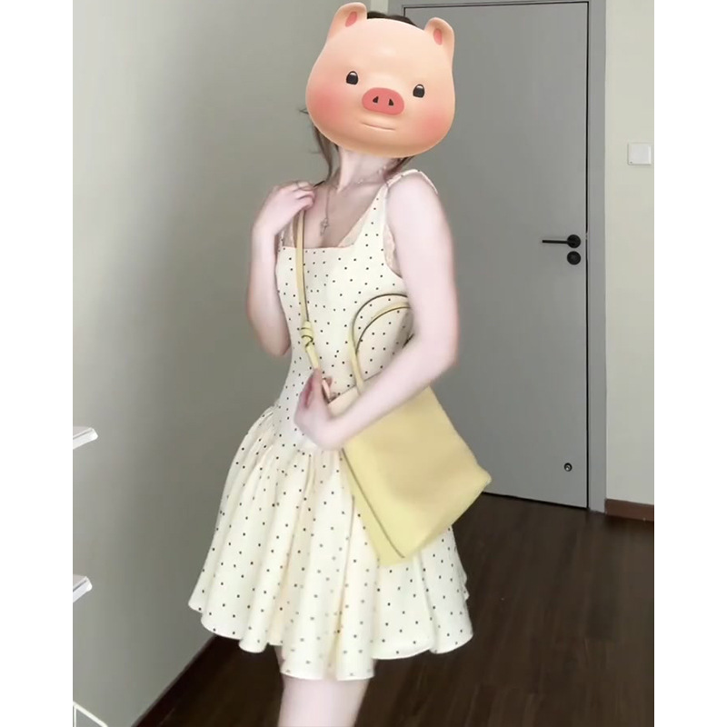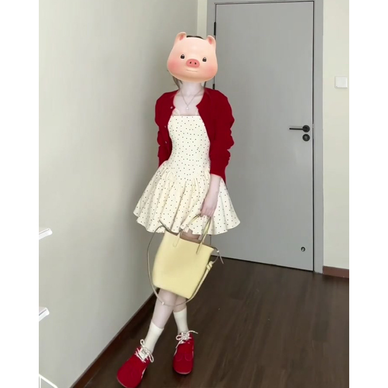 한국 스타일 부드러운 우아한 빨간 니트 카디건 재킷 폴카 스퀘어 칼라 슬링 원피스 여성의 봄과 여름 새 세트스토어 가기