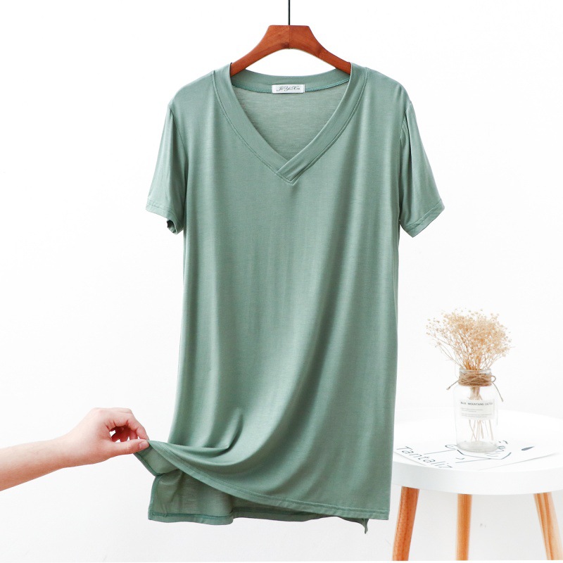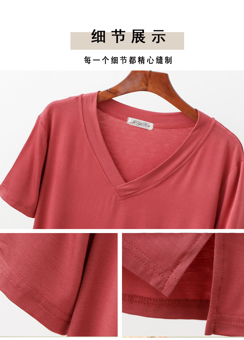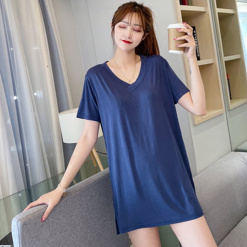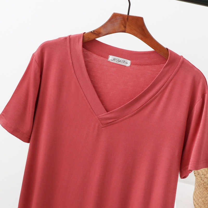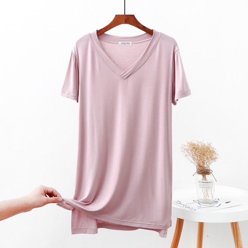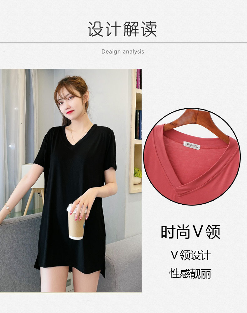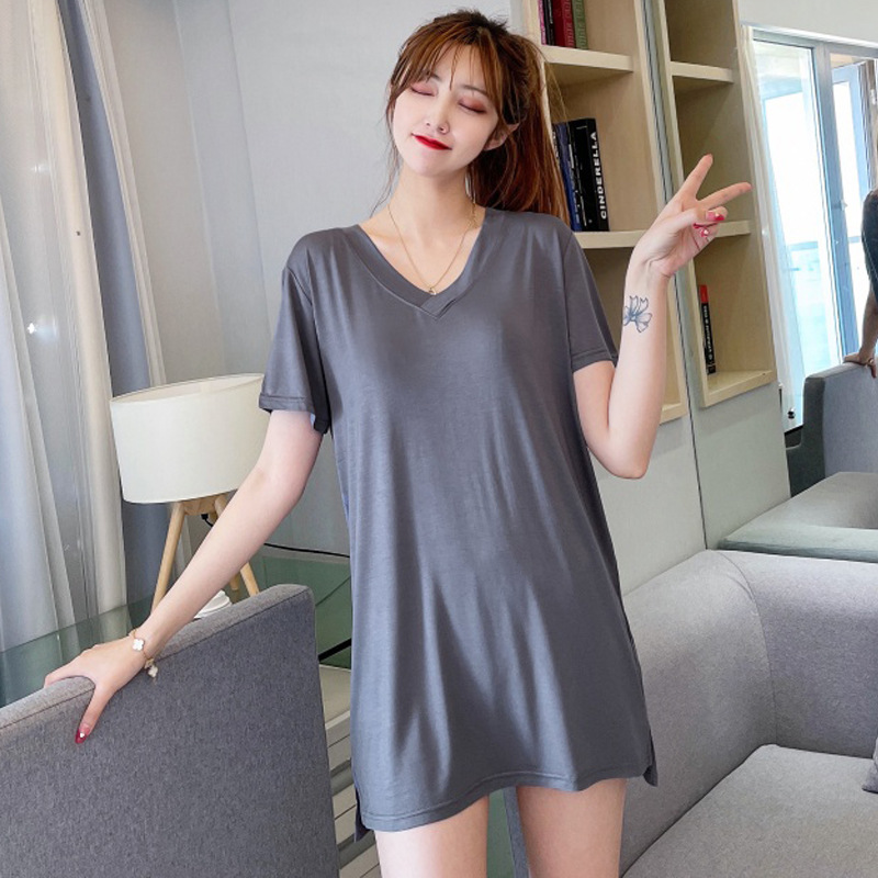 모달 반팔 티셔츠 여성 여름 외국인 우아한 V-넥 탑 중장베이스 느슨한 분할 엉덩이 티셔츠 스커트스토어 가기