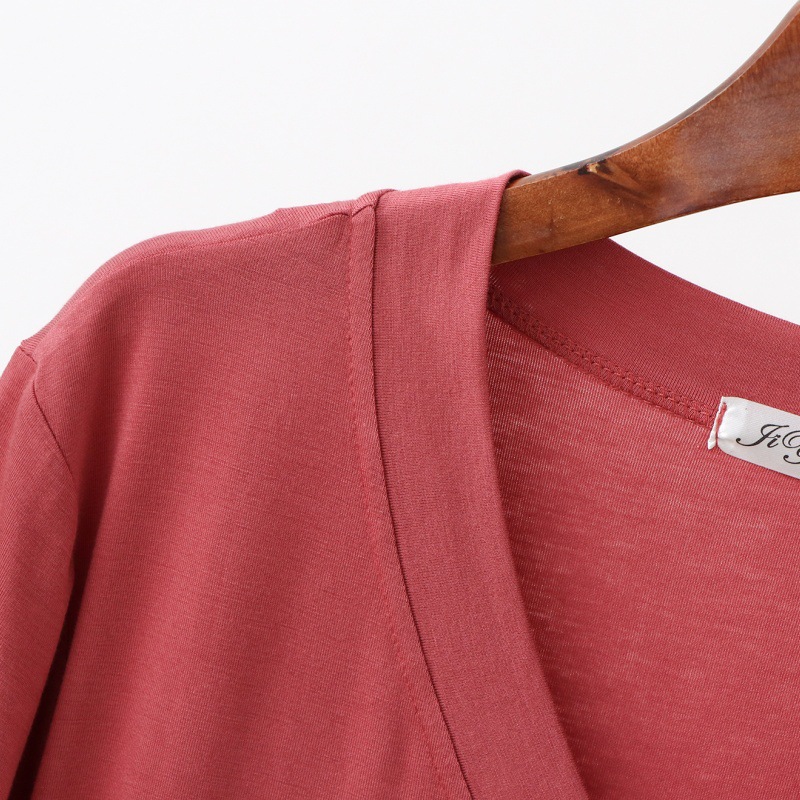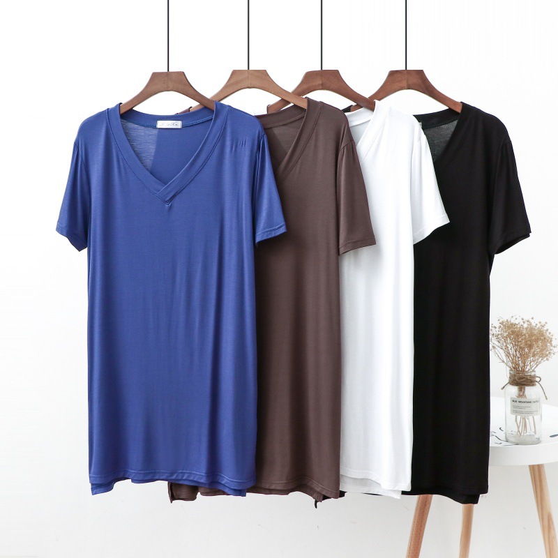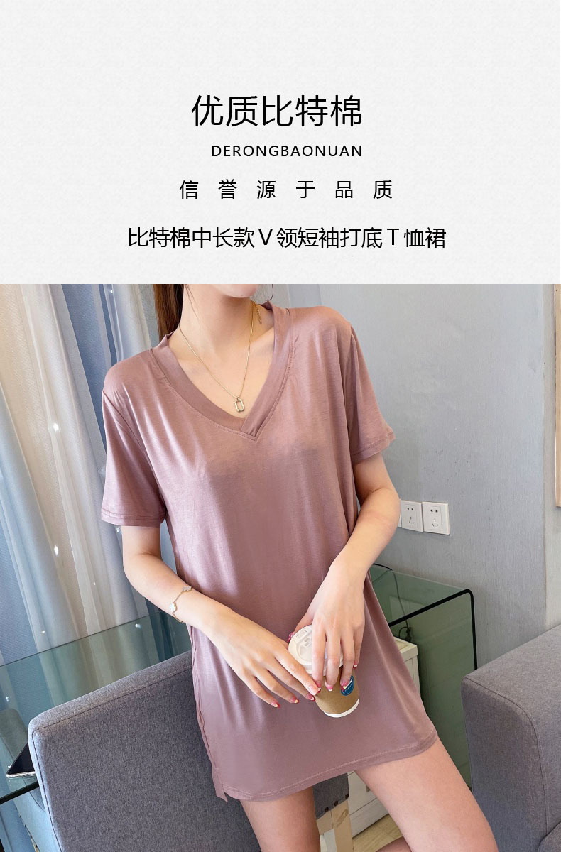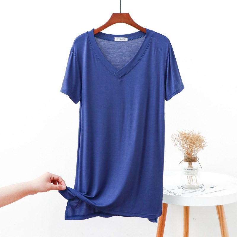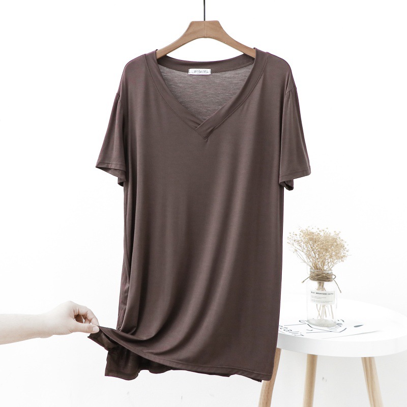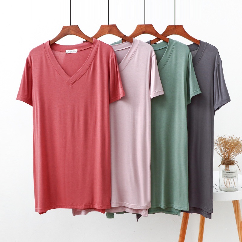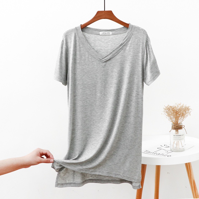 모달 반팔 티셔츠 여성 여름 외국인 우아한 V-넥 탑 중장베이스 느슨한 분할 엉덩이 티셔츠 스커트스토어 가기