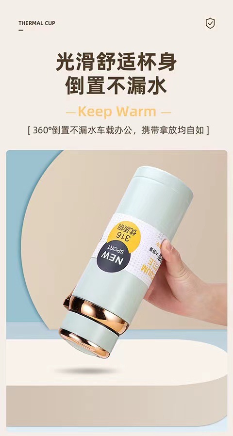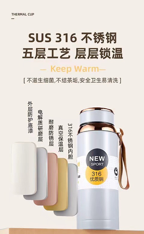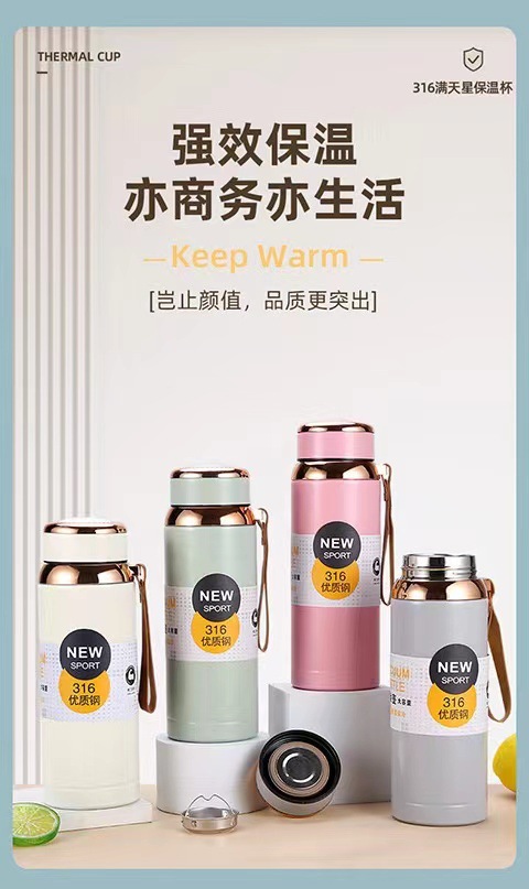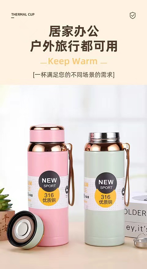 새로운 316 스테인레스 스틸 보온병 컵 대형 야외 휴대용 로프 티 드레인 스포츠 주전자와 로고스토어 가기