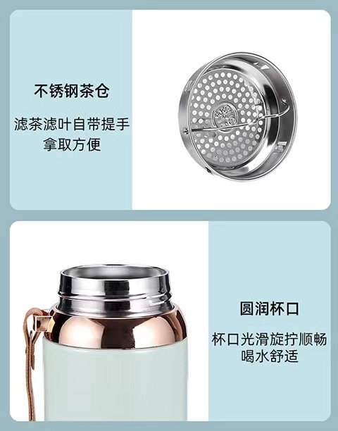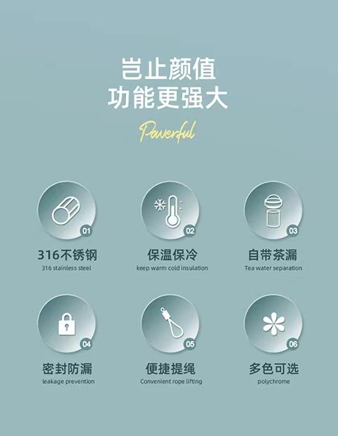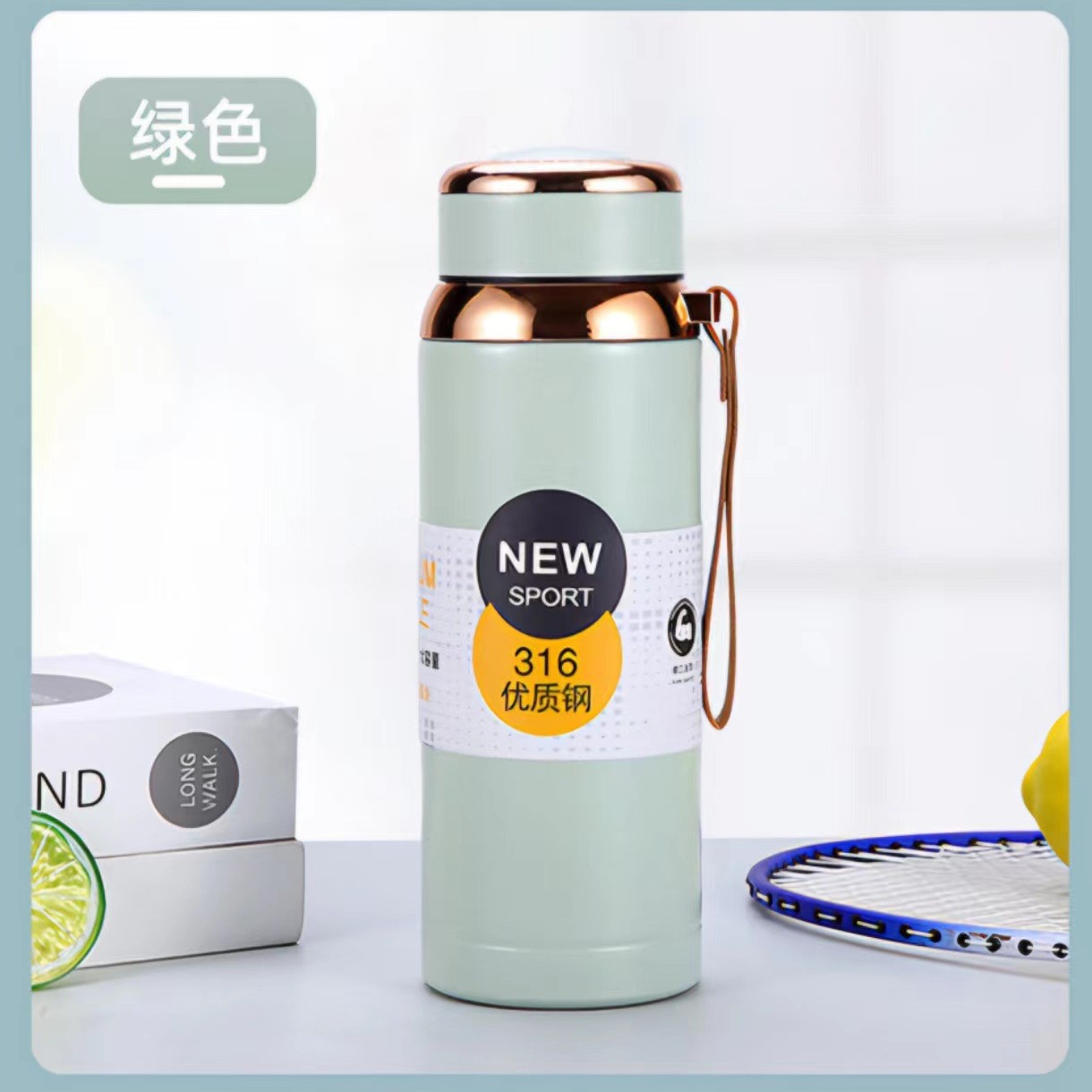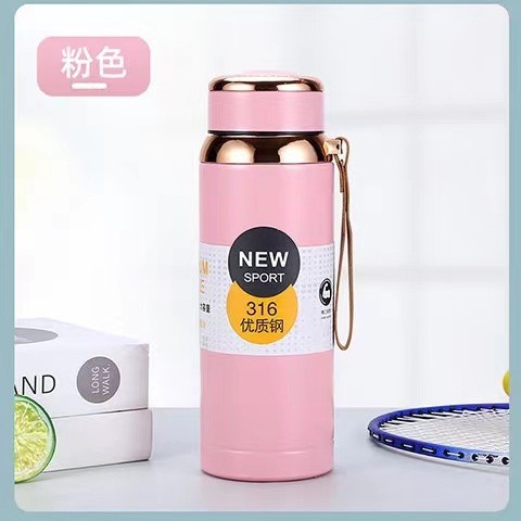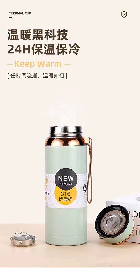 새로운 316 스테인레스 스틸 보온병 컵 대형 야외 휴대용 로프 티 드레인 스포츠 주전자와 로고