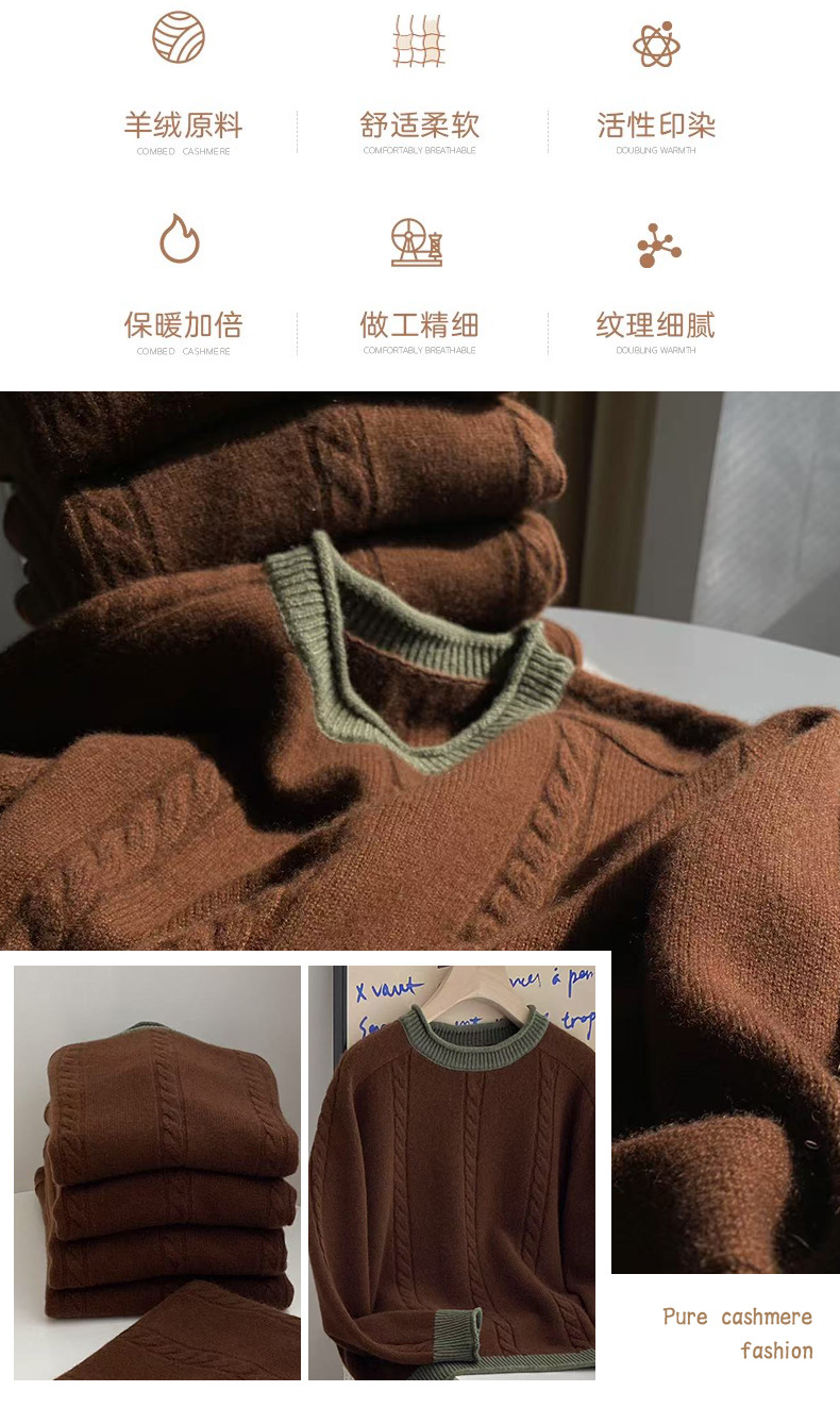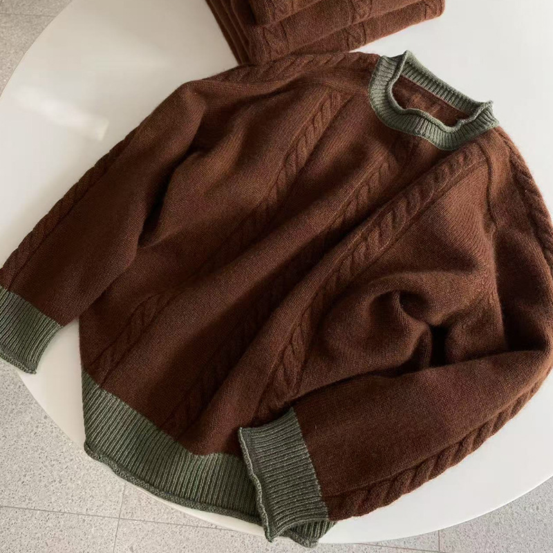 남성과 여성의 아기 새로운 단색 컬링 대비 색상 부모-자식 착용 100 캐시미어 스웨터 어린이의 몸에 꼭 맞는 캐시미어 스웨터스토어 가기