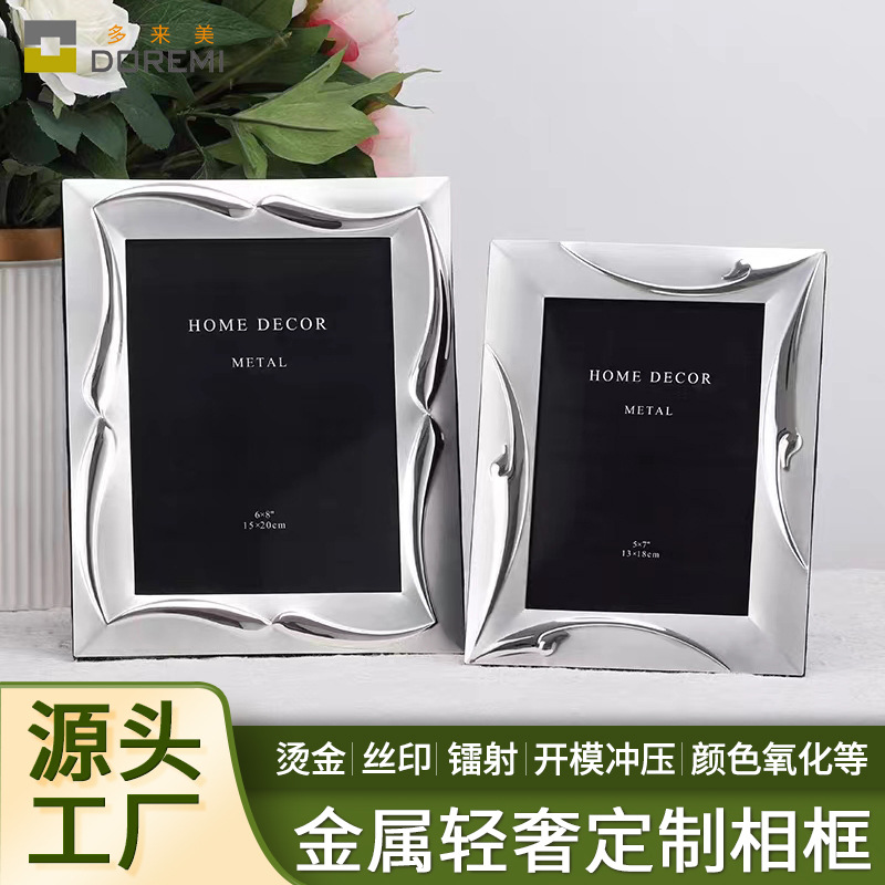 사용자 정의 인쇄 3 차원 실버 금속 사진 프레임 테이블 사진 데스크탑 테이블 라이트 럭셔리 질감 장식 그림 프레임