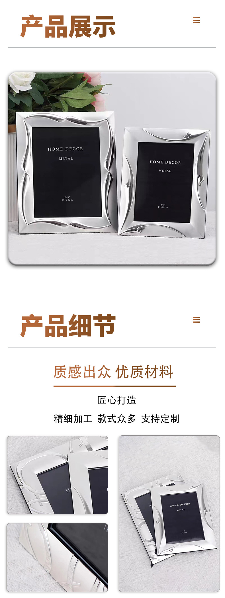 사용자 정의 인쇄 3 차원 실버 금속 사진 프레임 테이블 사진 데스크탑 테이블 라이트 럭셔리 질감 장식 그림 프레임스토어 가기