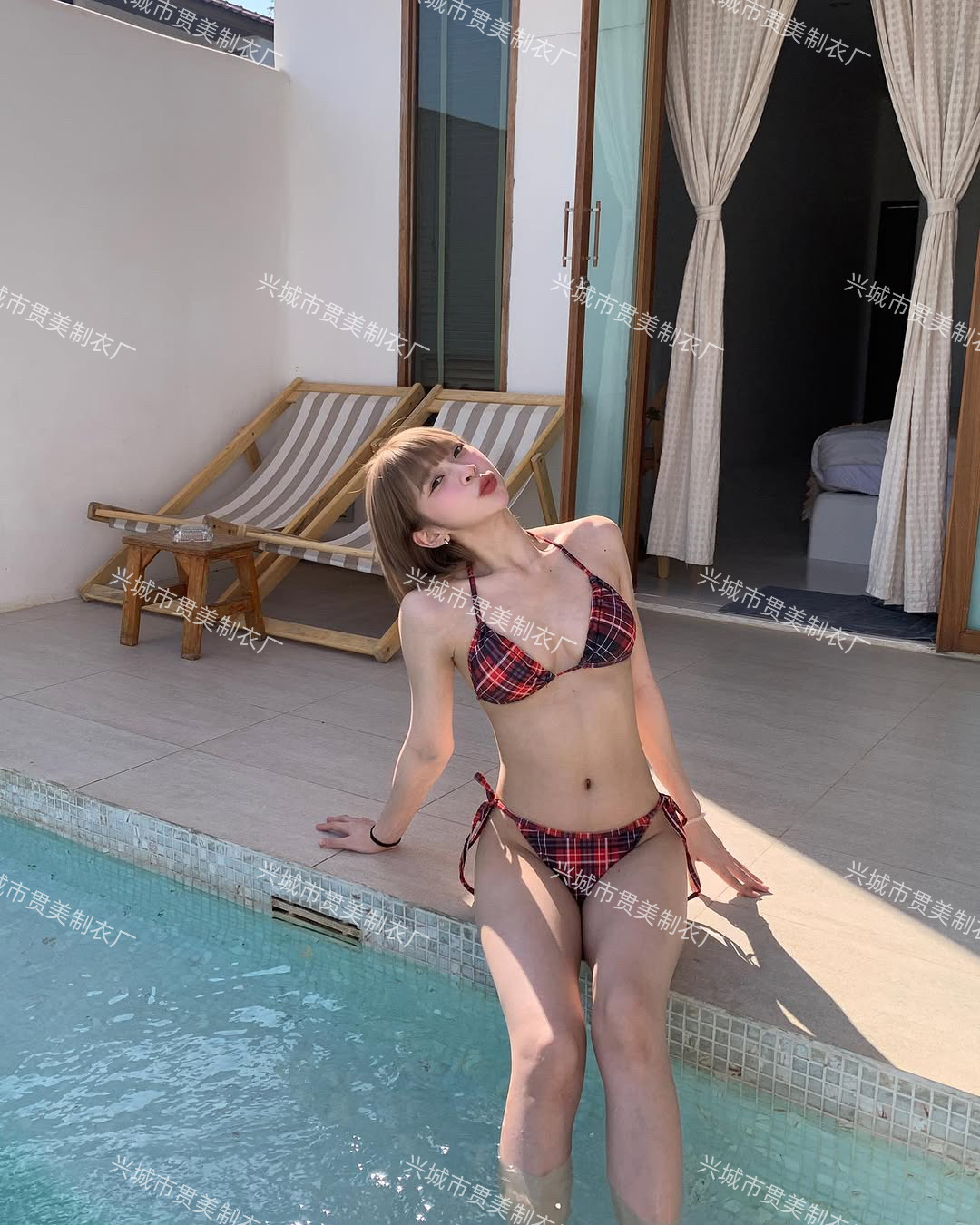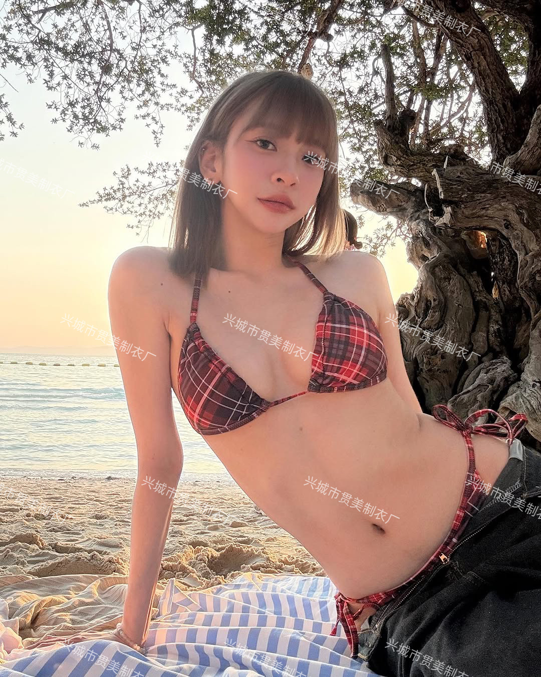 여성을 위한 새로운 일본식 격자 무늬 비키니 수영복, 고급 온천 스플릿 수영복, 순수한 욕망 핫 소녀 휴가 온천