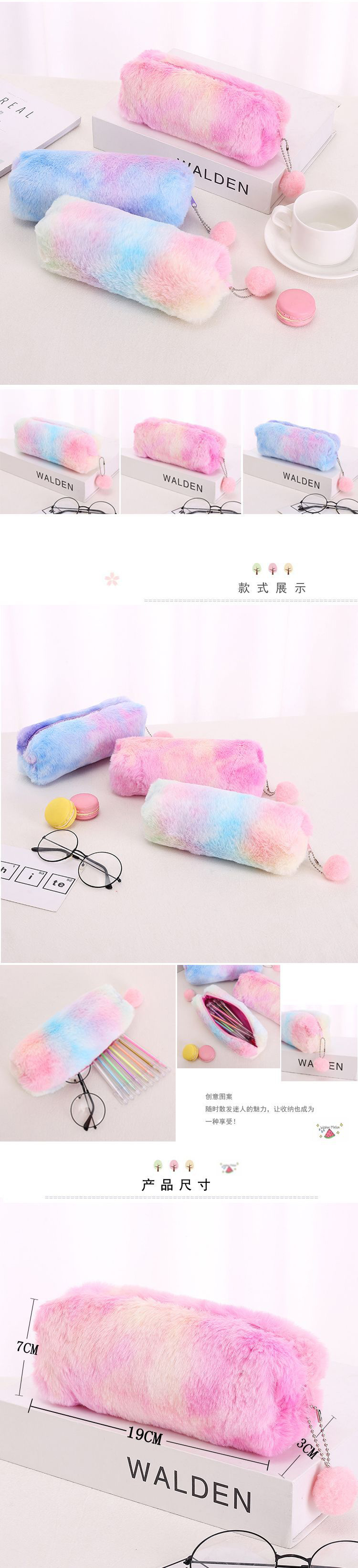 소녀의 심장 그라디언트 색상 귀여운 플러시 크리 에이 티브 펜 가방 학생 간단한 저장 가방스토어 가기