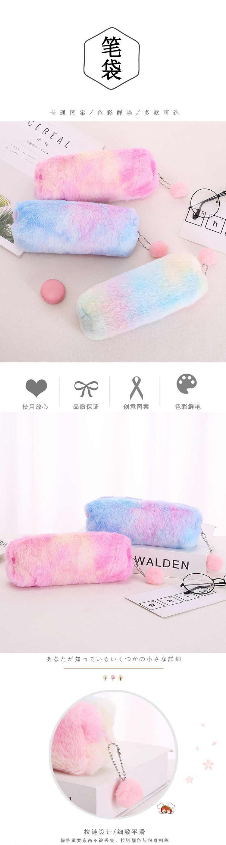 소녀의 심장 그라디언트 색상 귀여운 플러시 크리 에이 티브 펜 가방 학생 간단한 저장 가방