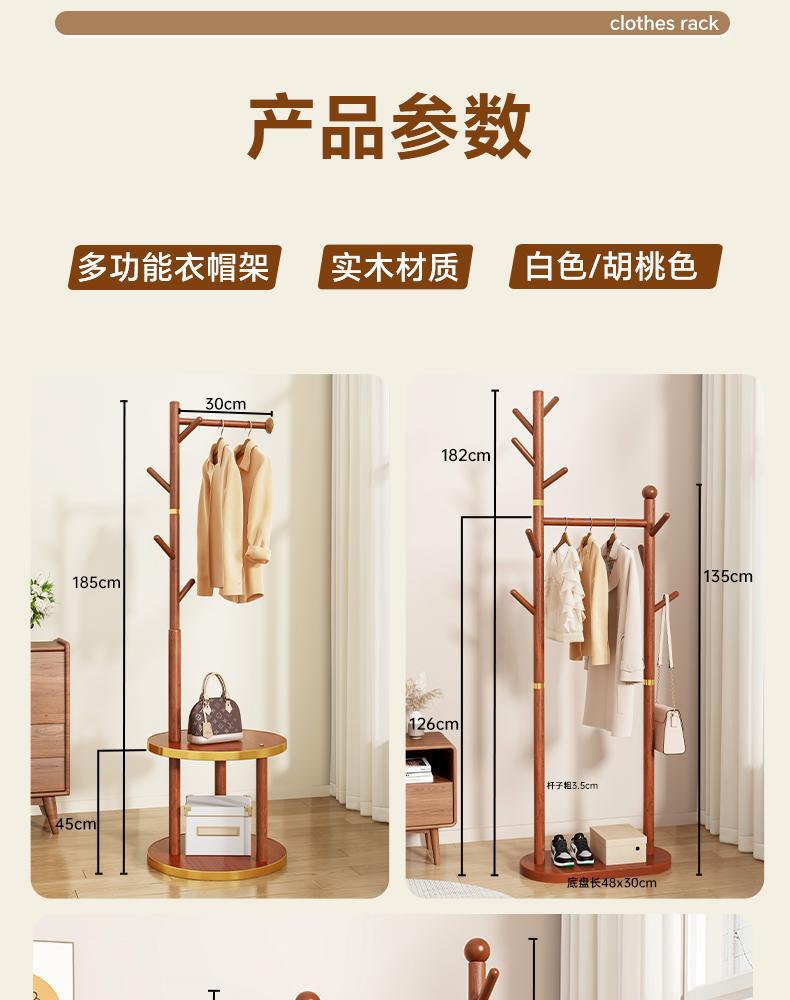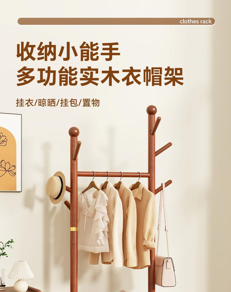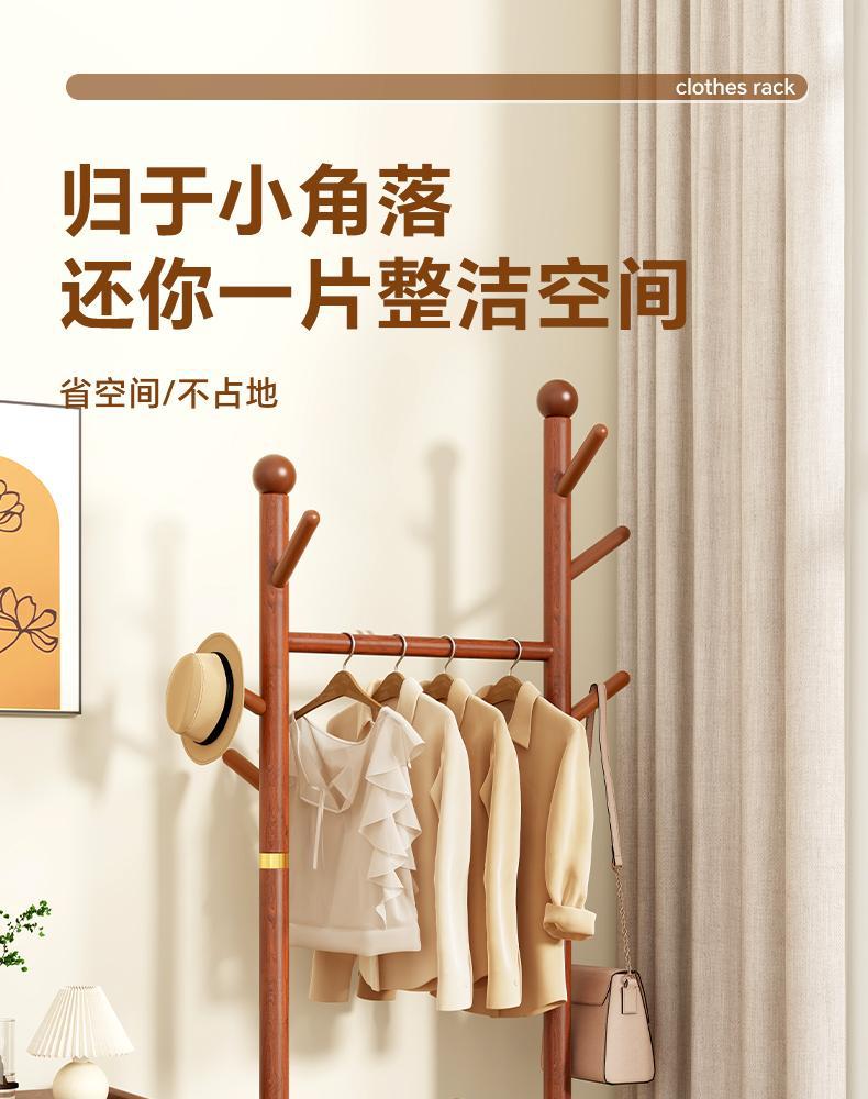 단단한 나무 옷걸이 바닥 침실 걸이 실내 가정용 수직 옷 보관 선반 방 보관 옷 랙스토어 가기