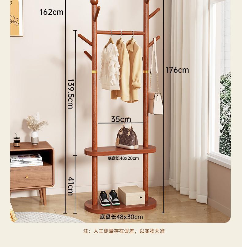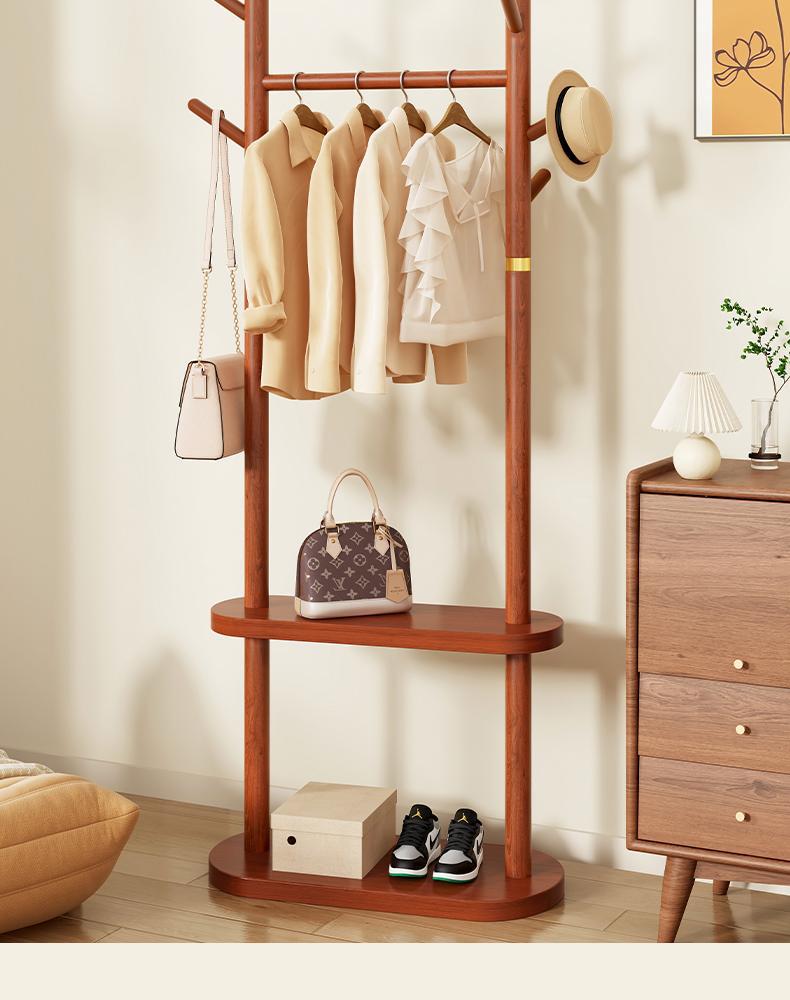 단단한 나무 옷걸이 바닥 침실 걸이 실내 가정용 수직 옷 보관 선반 방 보관 옷 랙
