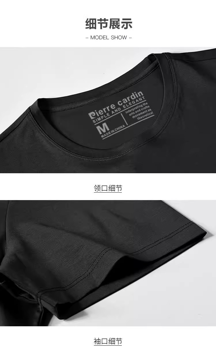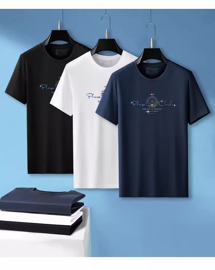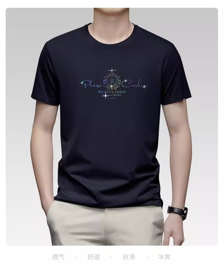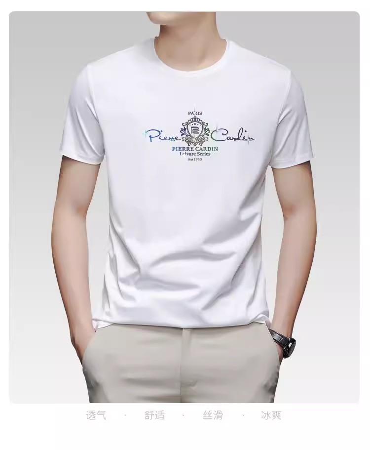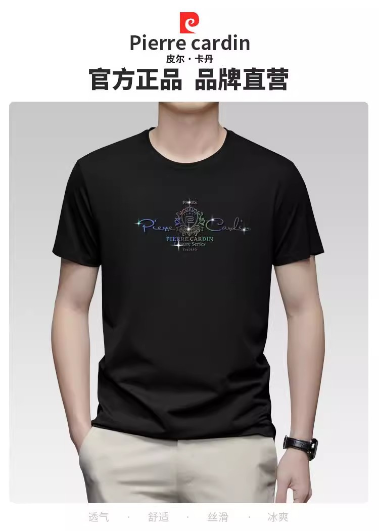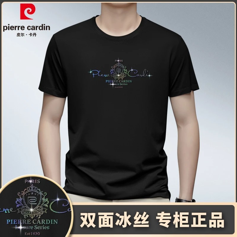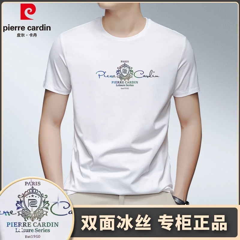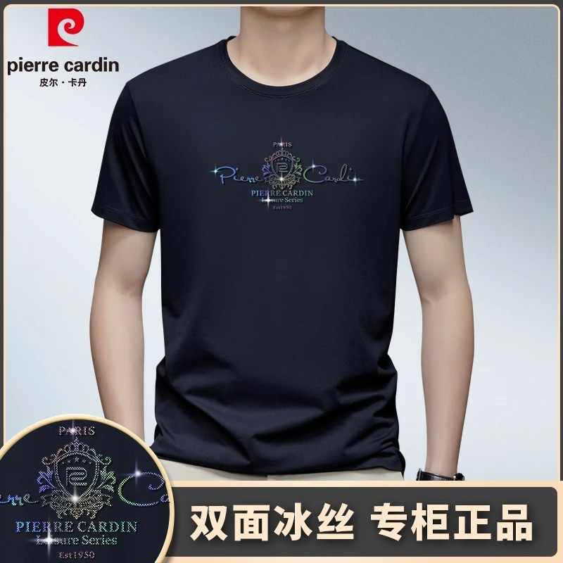 [태그 포함] 피에르 카딘 여름 새로운 남성 새로운 라운드 넥 짧은 소매 편안한 통기성 티셔츠 얇은 와이드