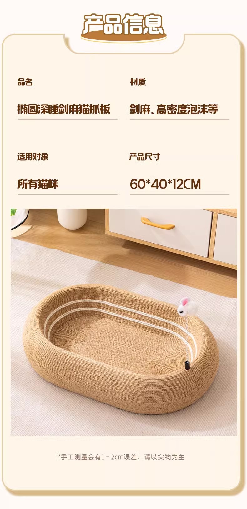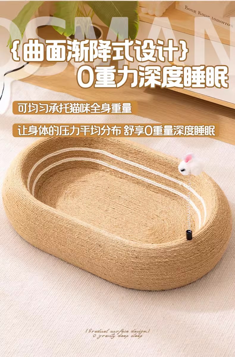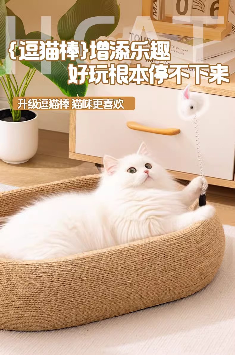• [풀 사이잘] 딥슬립 타원형 고양이 긁는 기둥(고양이 티저 스틱 포함)