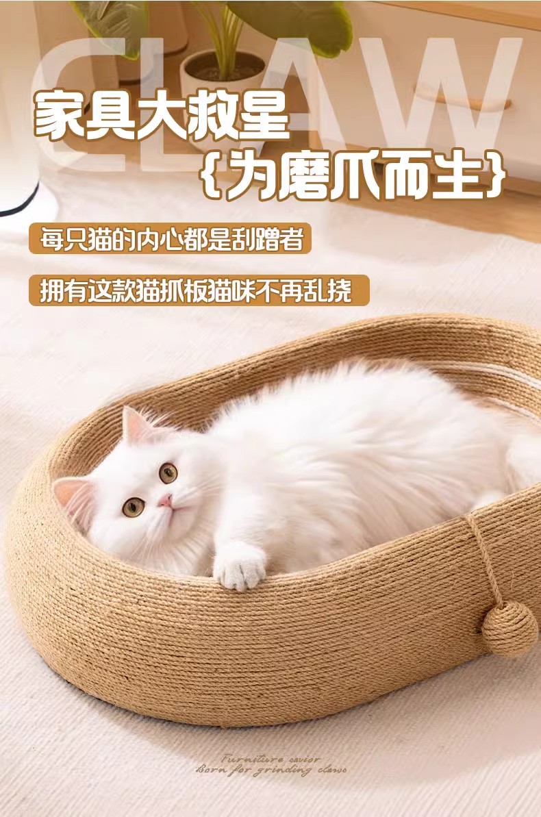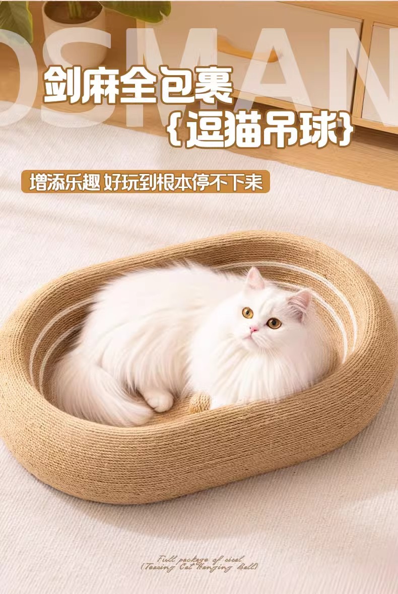 • [풀 사이잘] 타원형 사이잘 고양이 긁는 기둥(고양이 놀리는 공 포함)