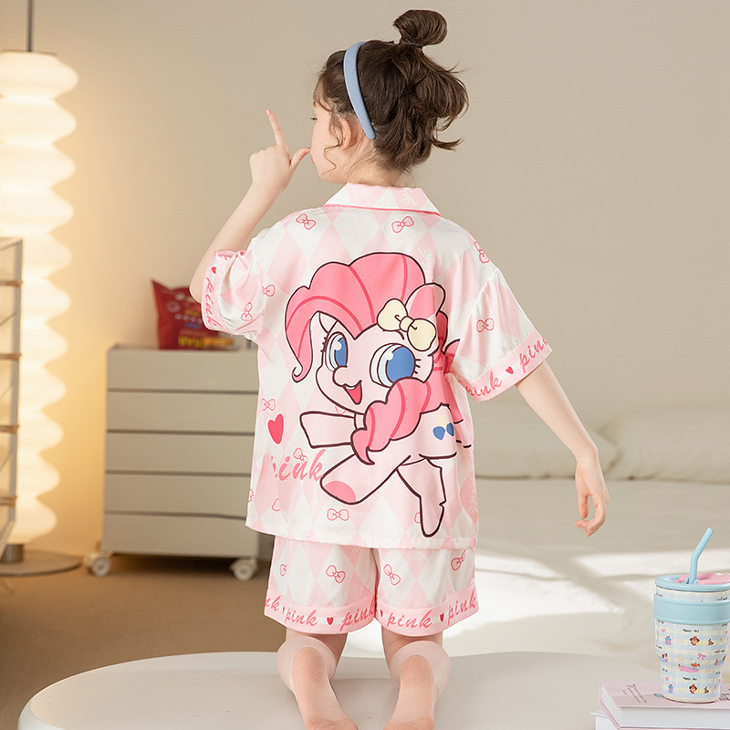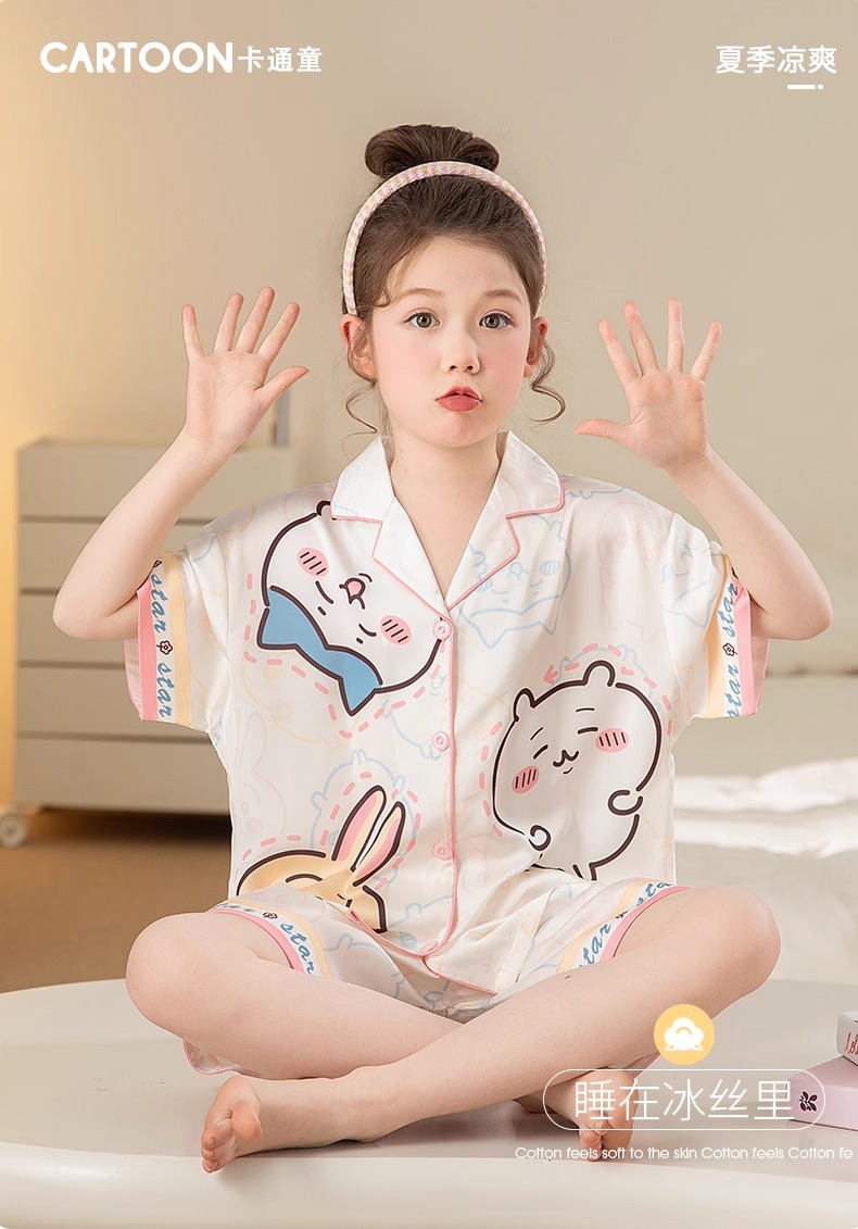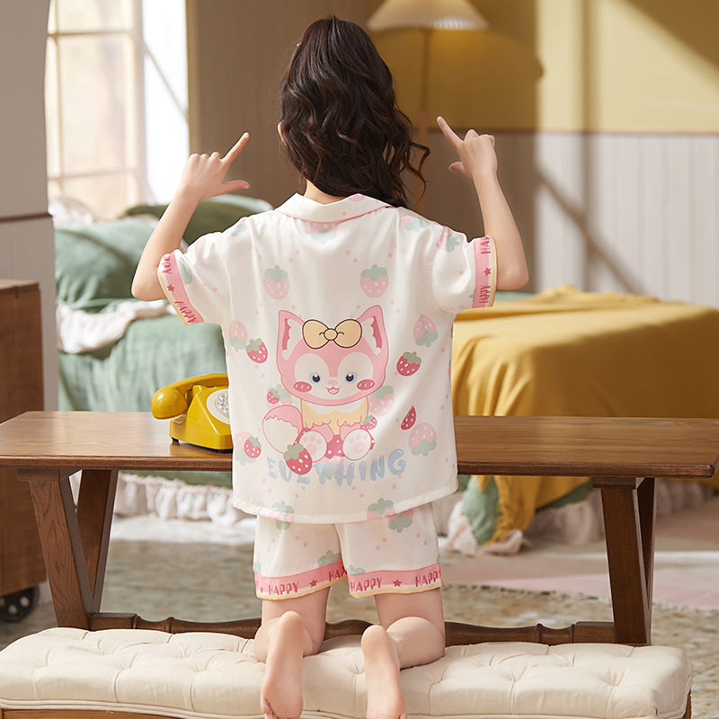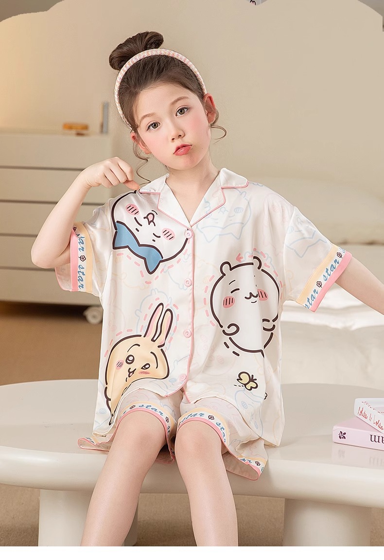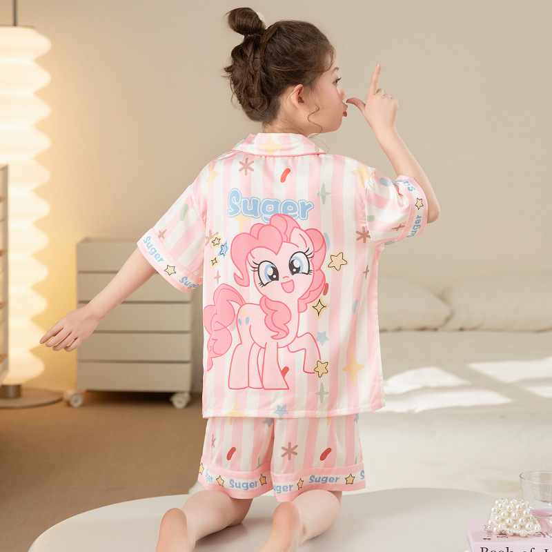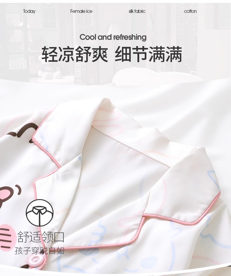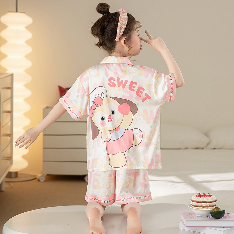 여자 잠옷 여름 아이스 실크 얇은 아이들 소녀 공주 스타일 아기 집 옷 여름 2025 새로운 세트