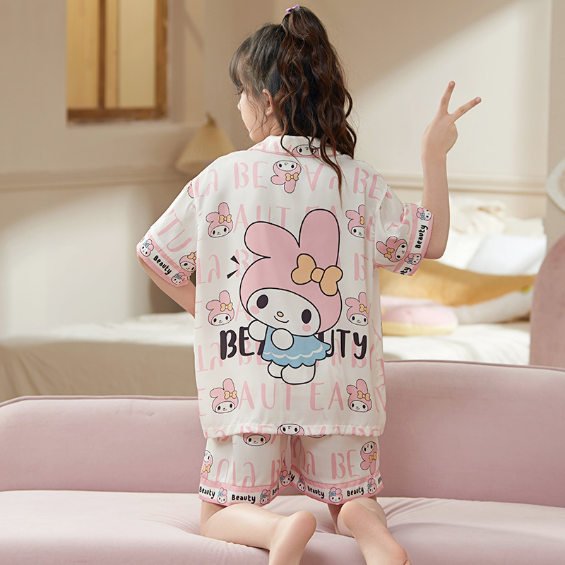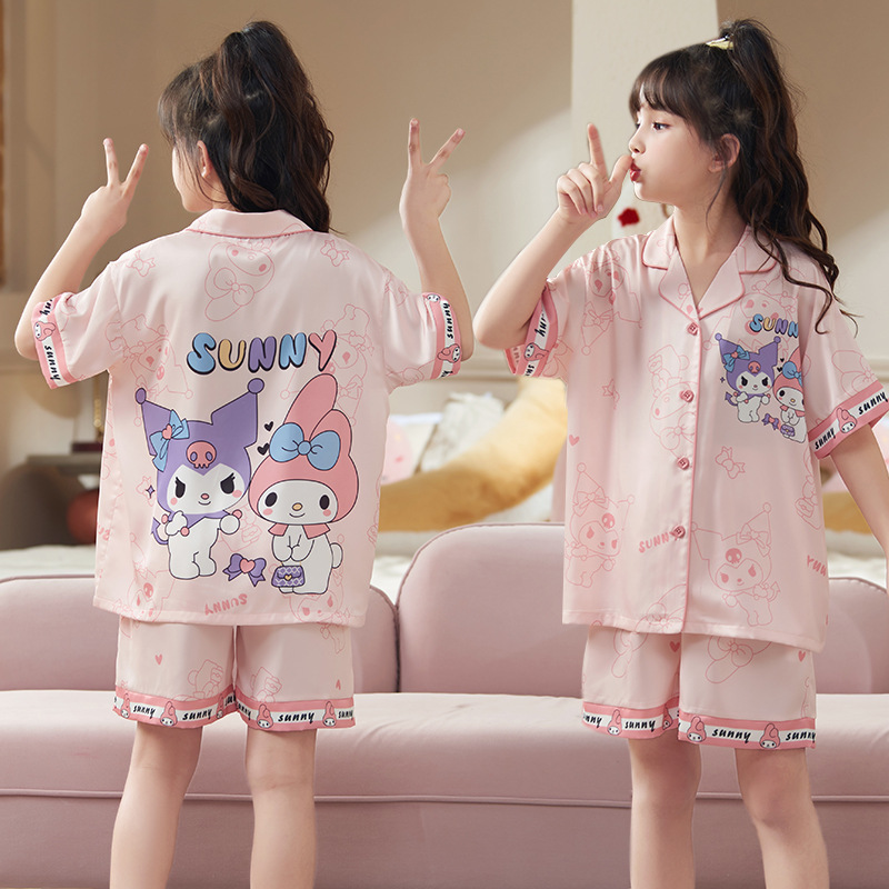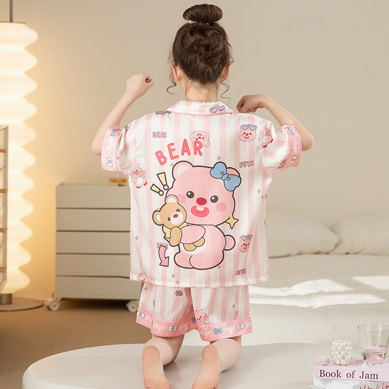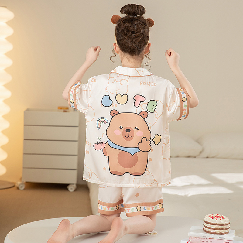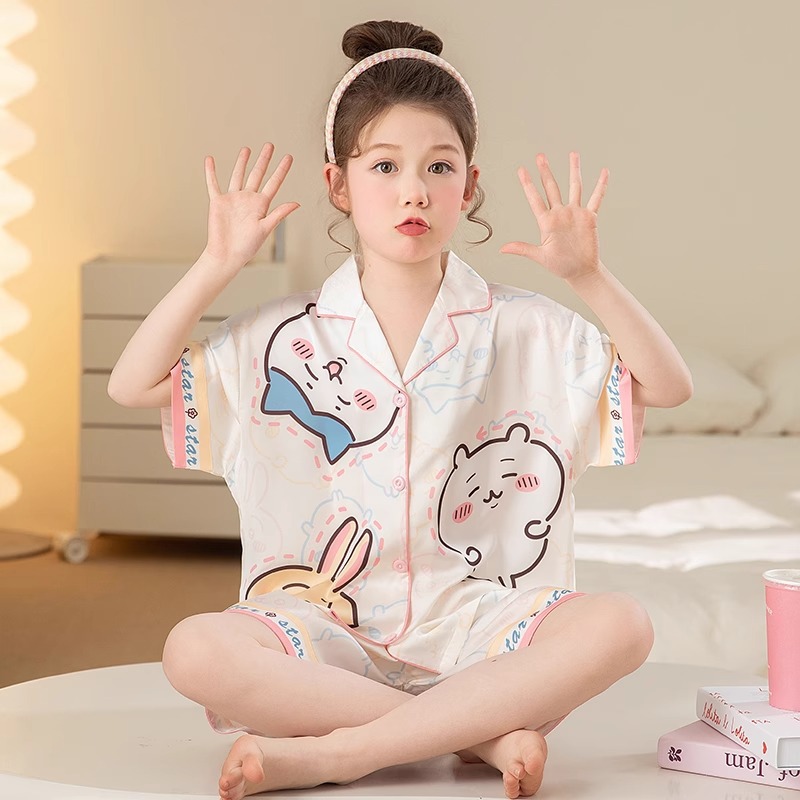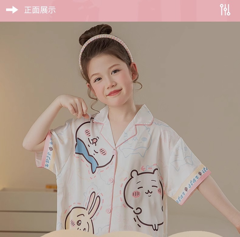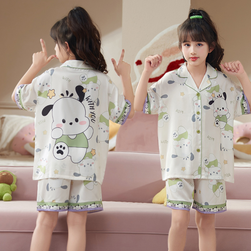 여자 잠옷 여름 아이스 실크 얇은 아이들 소녀 공주 스타일 아기 집 옷 여름 2025 새로운 세트