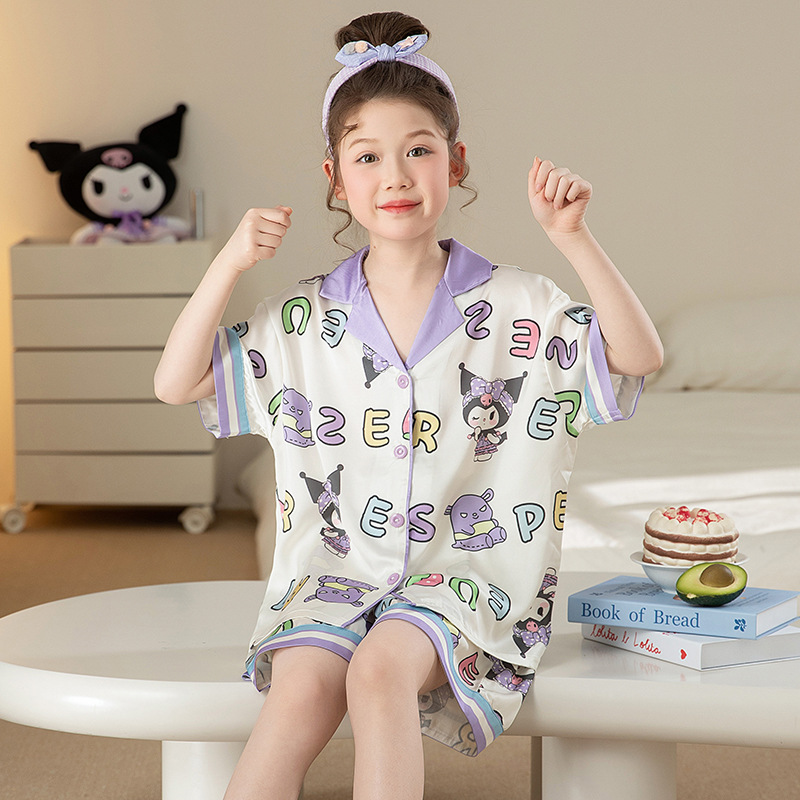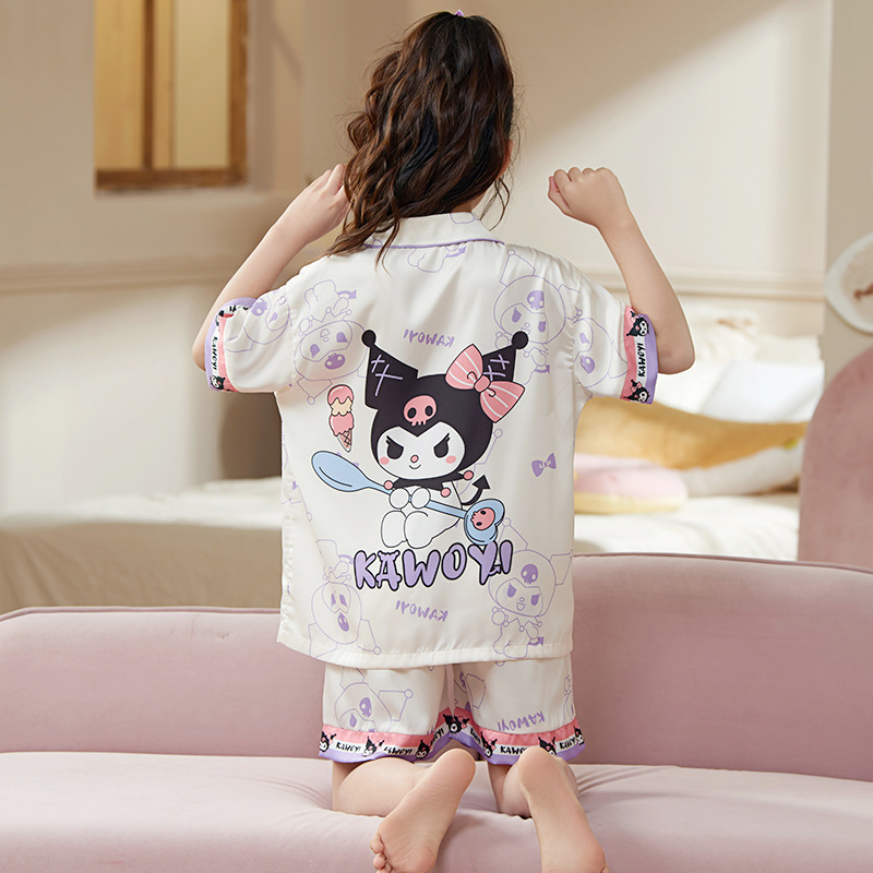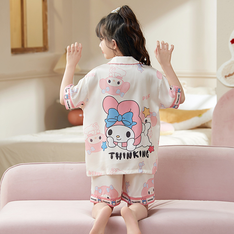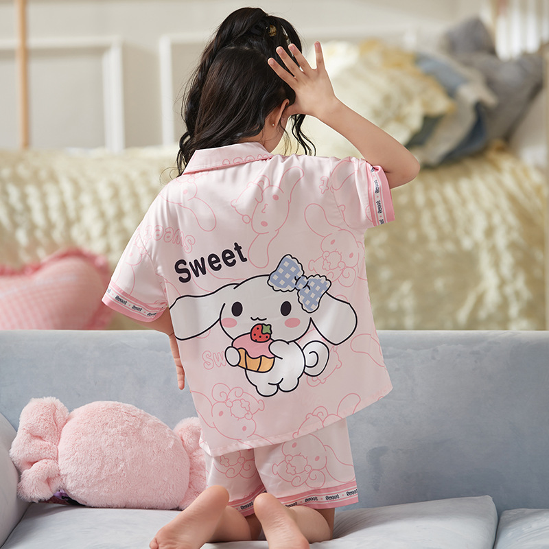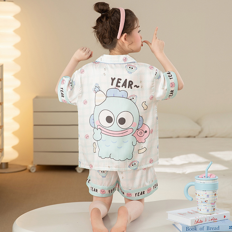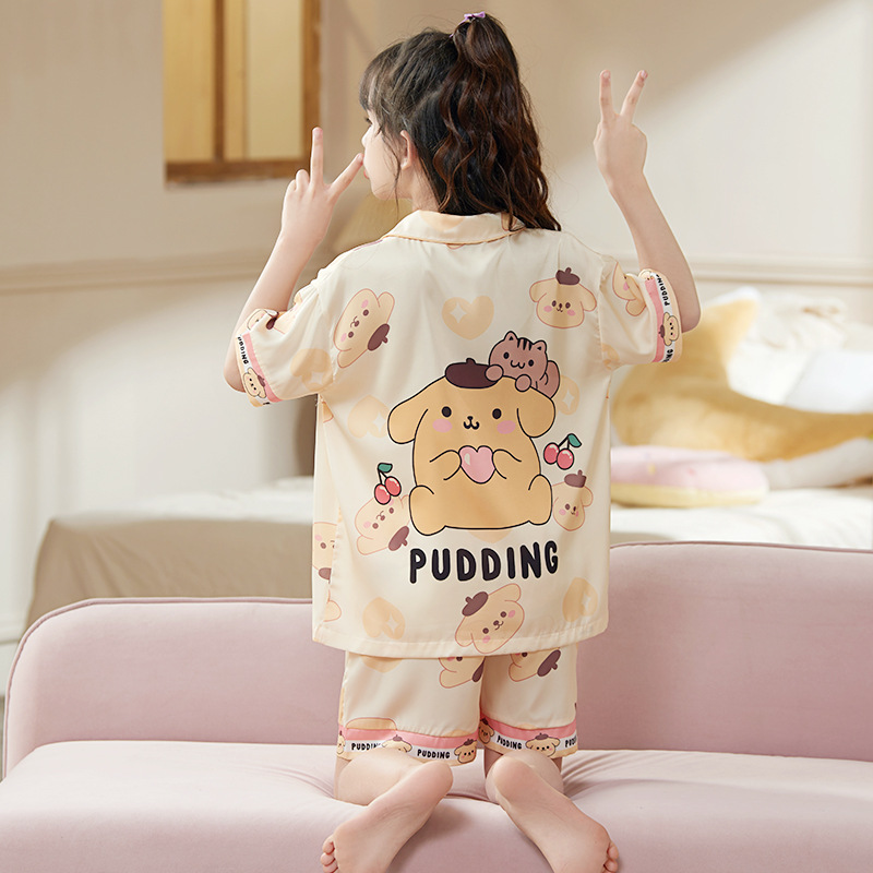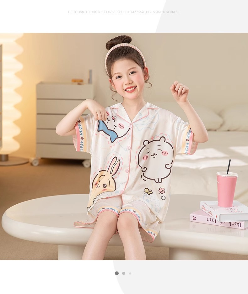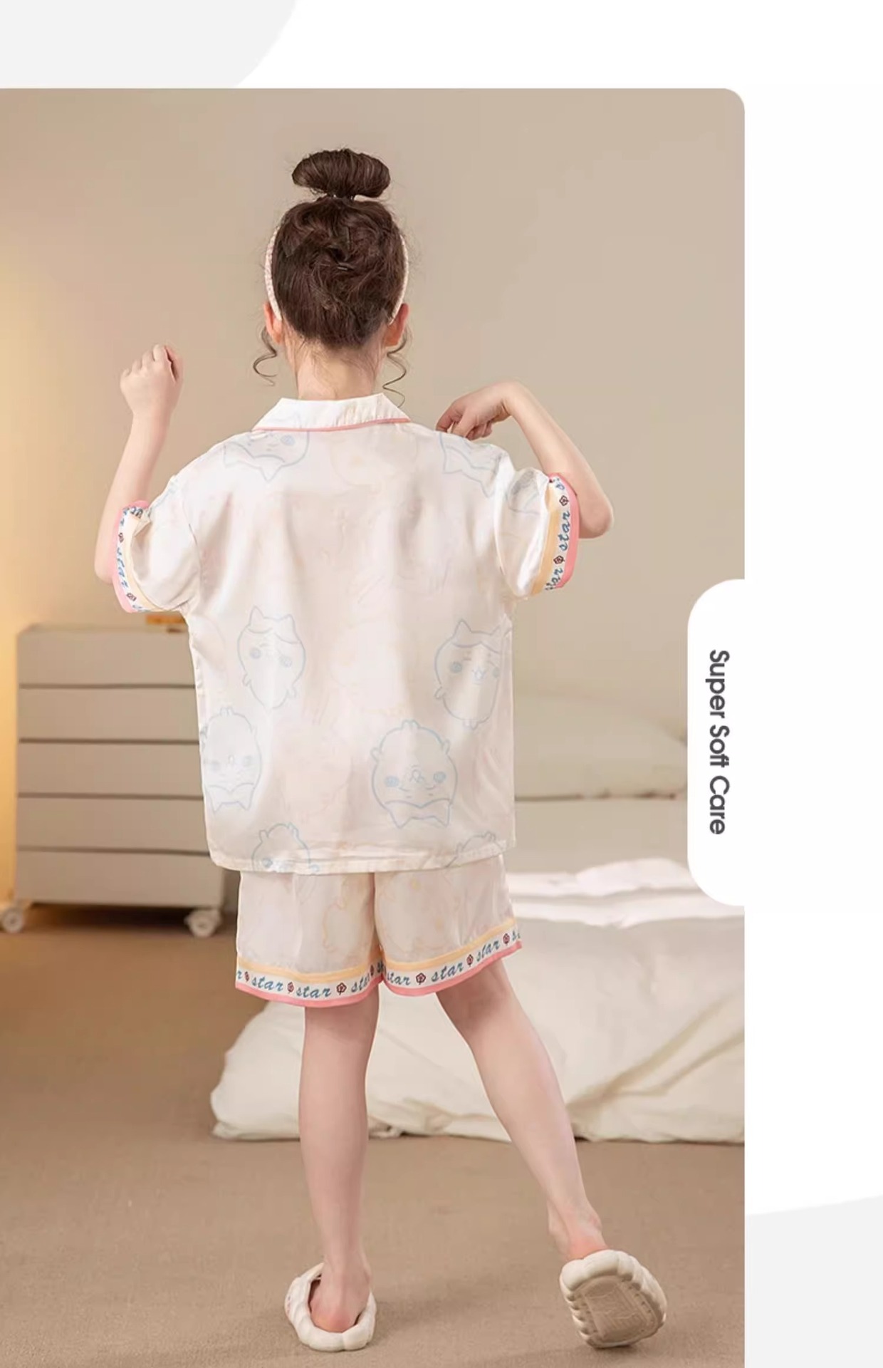 여자 잠옷 여름 아이스 실크 얇은 아이들 소녀 공주 스타일 아기 집 옷 여름 2025 새로운 세트