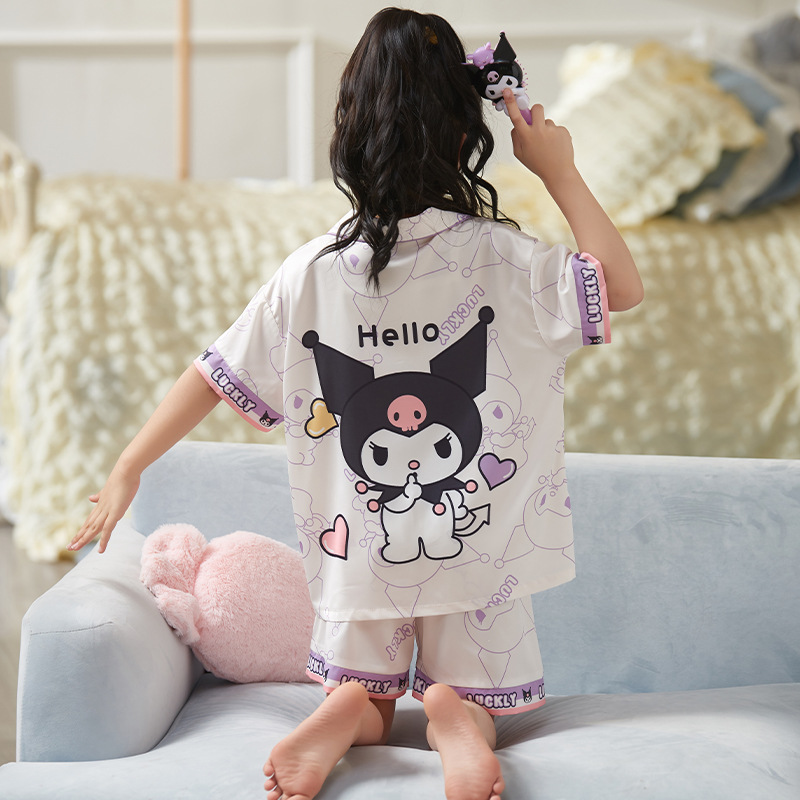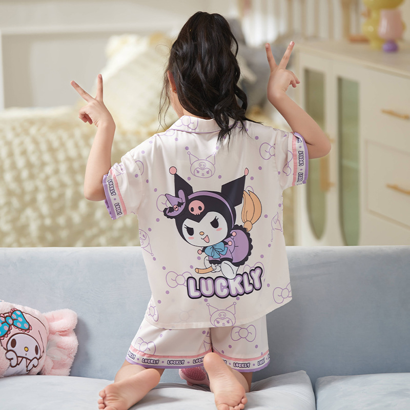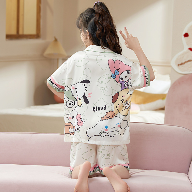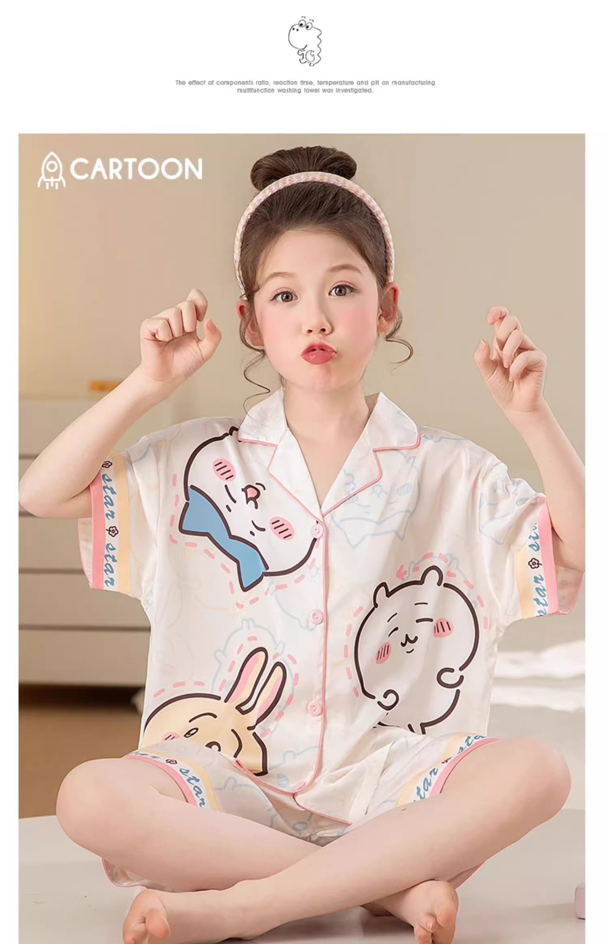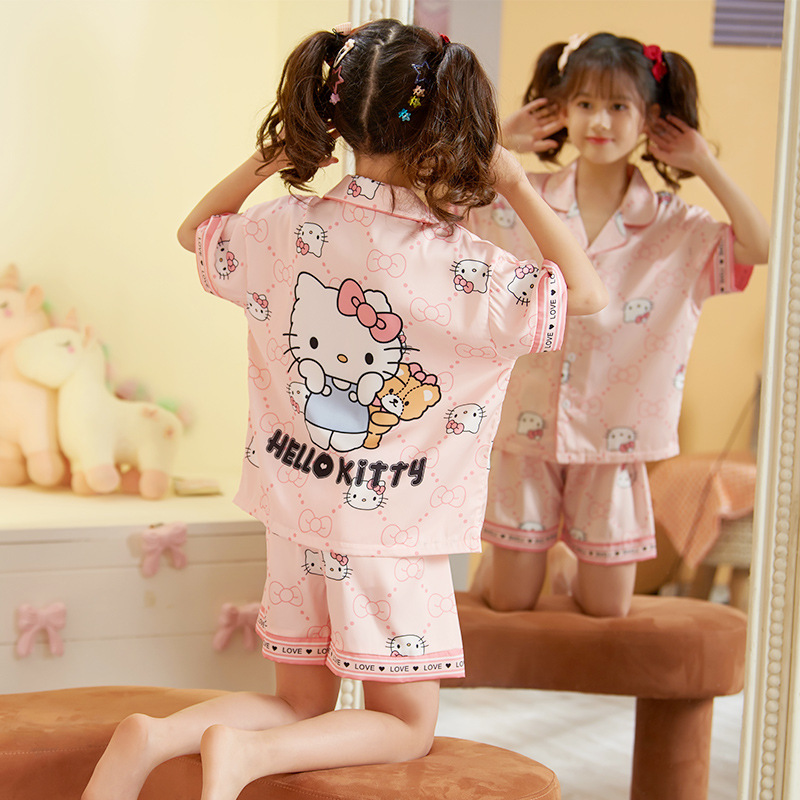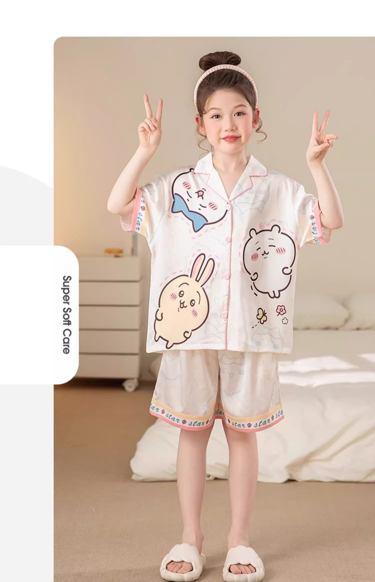여자 잠옷 여름 아이스 실크 얇은 아이들 소녀 공주 스타일 아기 집 옷 여름 2025 새로운 세트