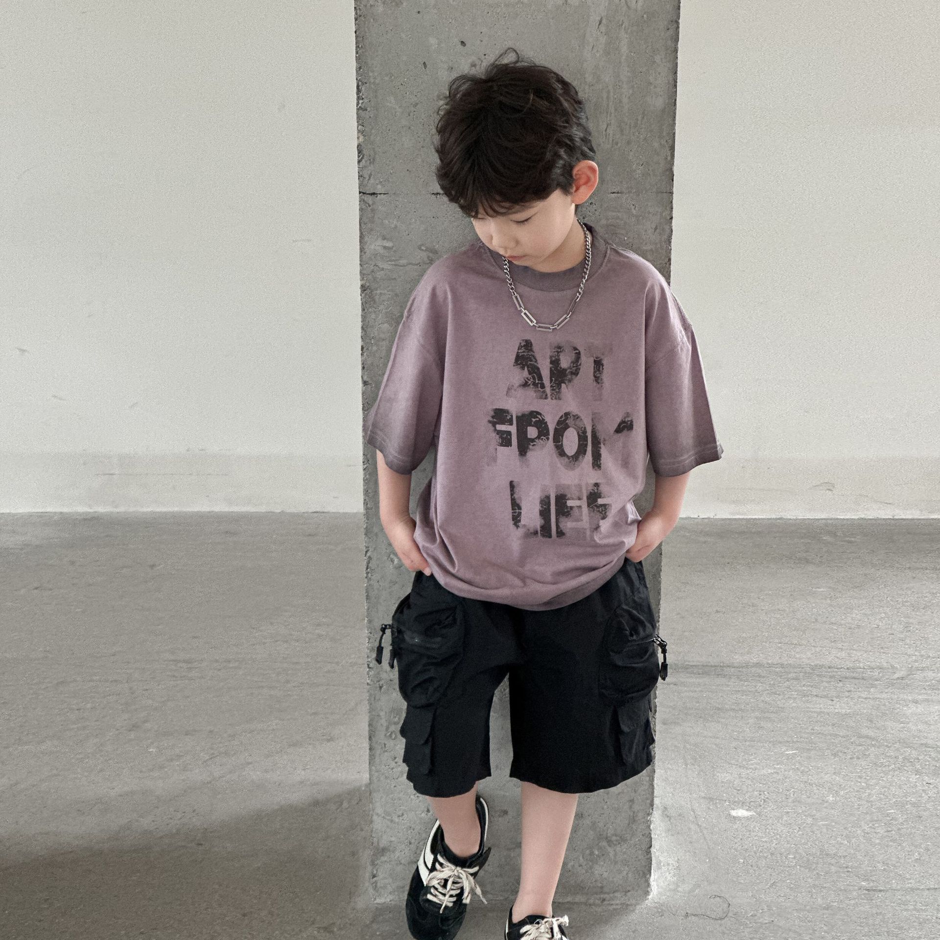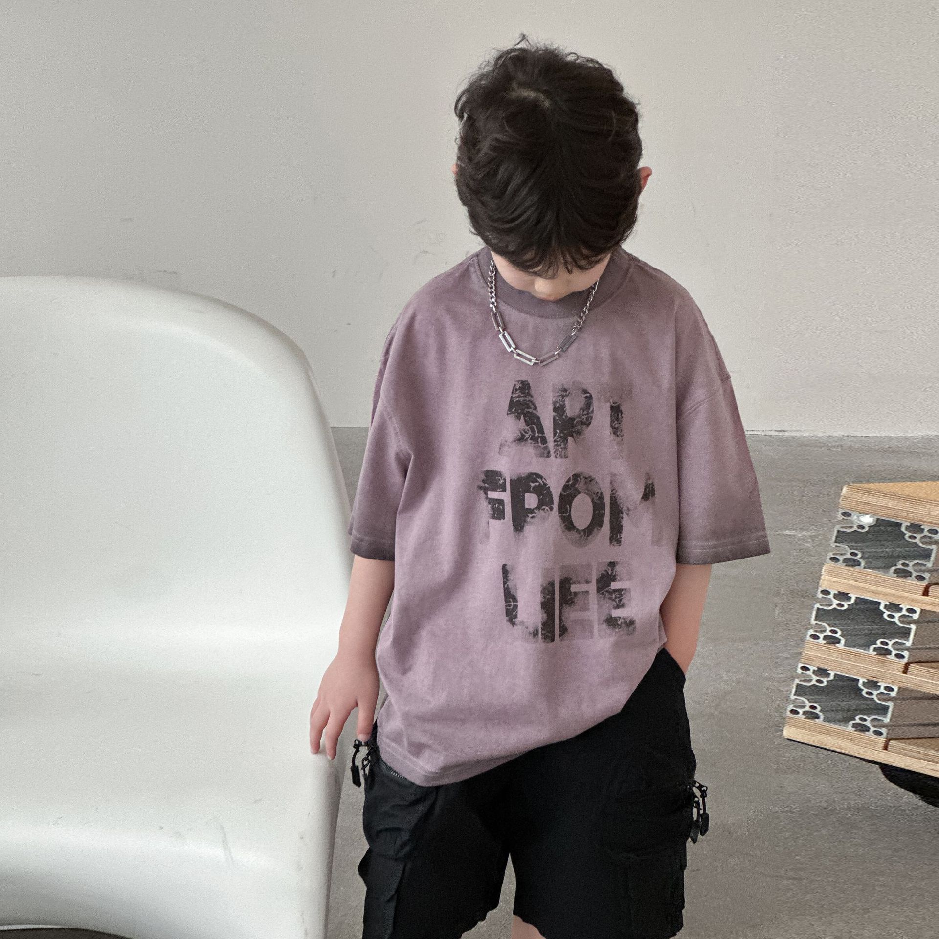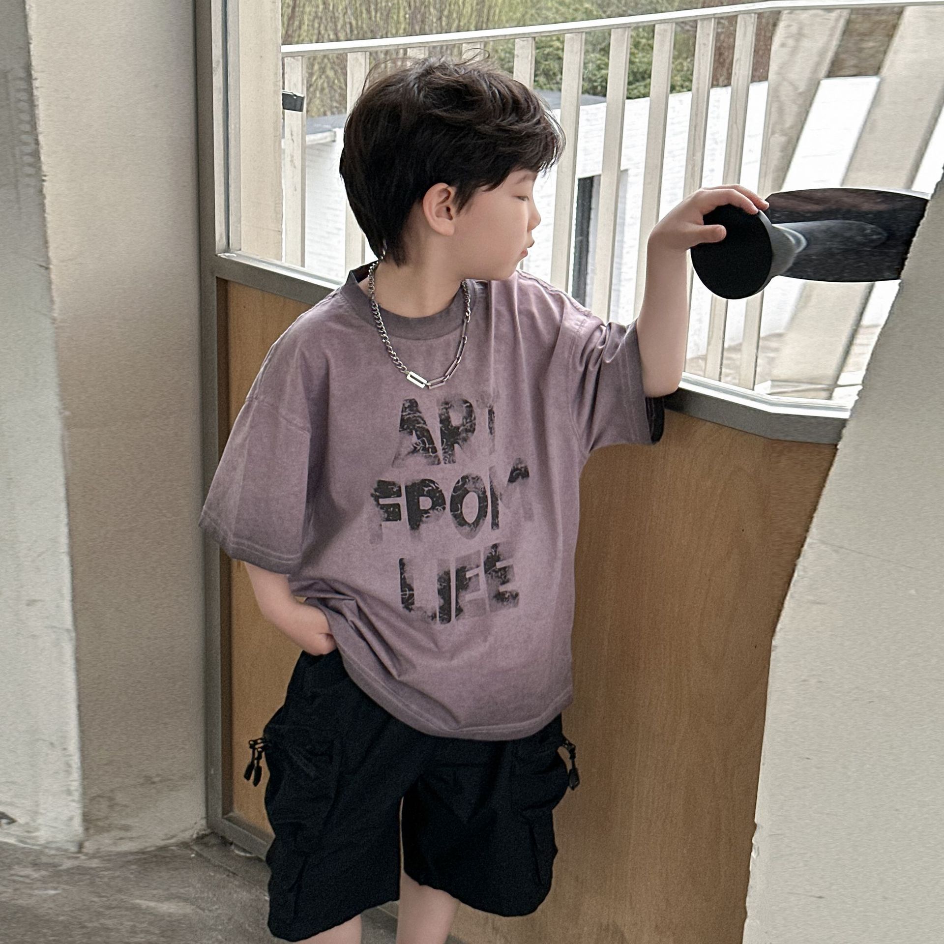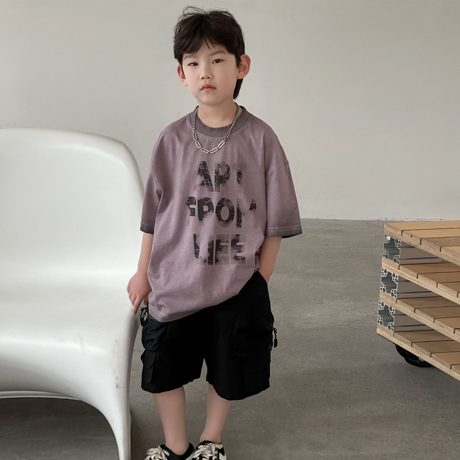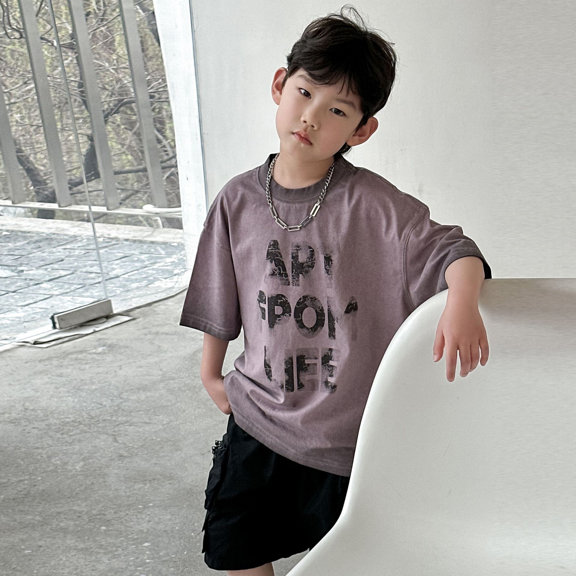 소년 여름 반팔 T2025 여름 새로운 어린이 유행 브랜드 티셔츠 소년 한국 느슨한 둥근 목 탑 아동복스토어 가기